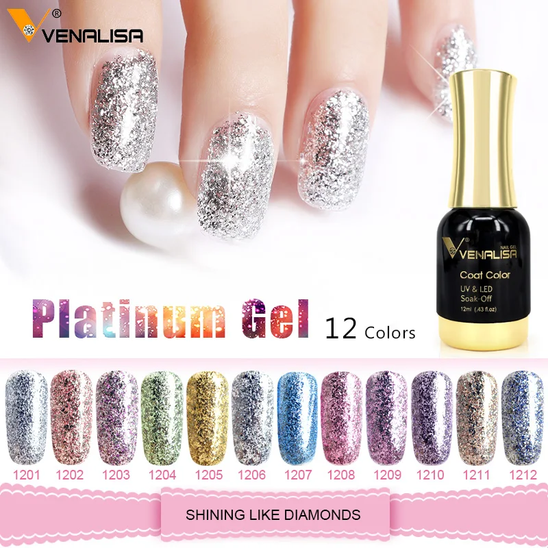 VENALISA 12ML Super Glitter Sparkle Platinum Gel Nail Polish