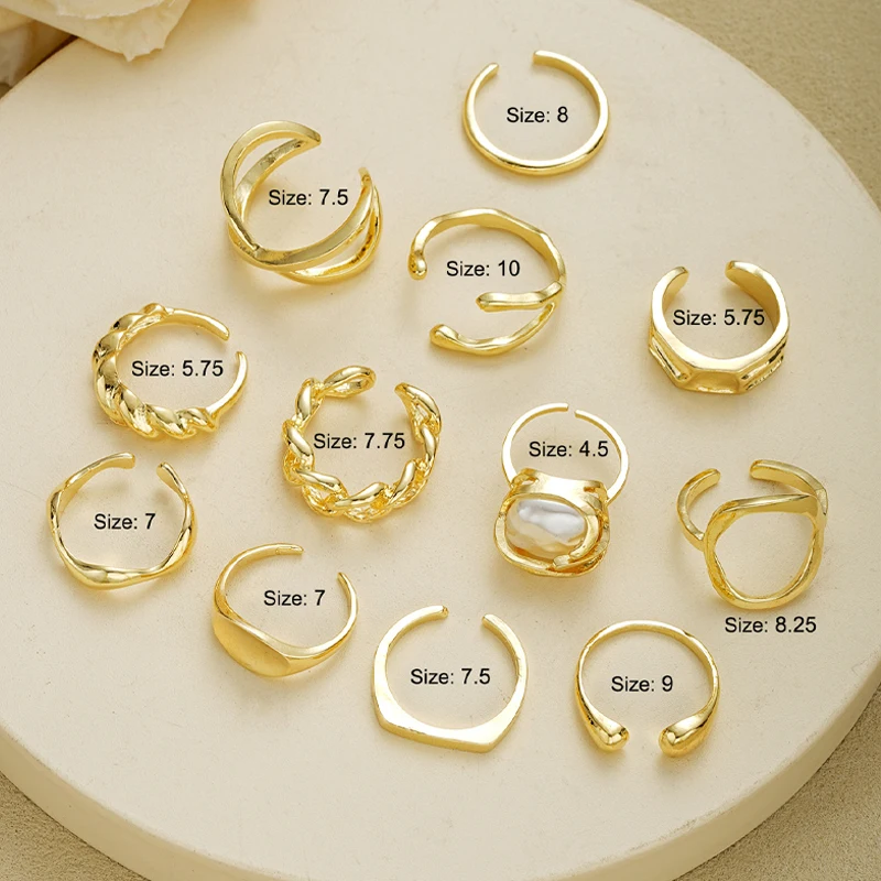12 Pcs/Set Fashion Gold Color Irregular Geometric Open Rings For Women Men Punk Metal Adjustable Knuckle Joint Ring Jewelry Gift