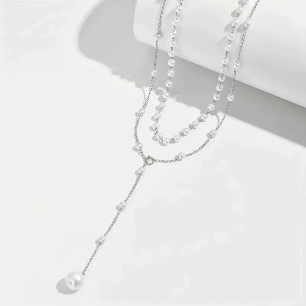2025 New Korean Imitation Pearl Double Layered Choker Big Ball Bead Pendant Tassel Necklace for Women Sexy Fashion Jewelry Gifts