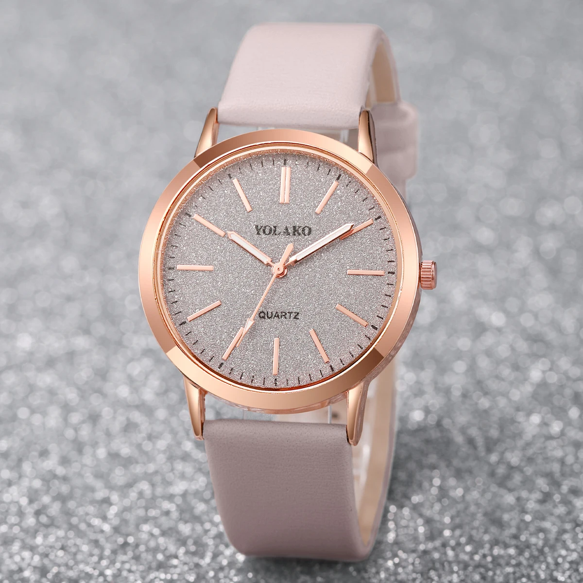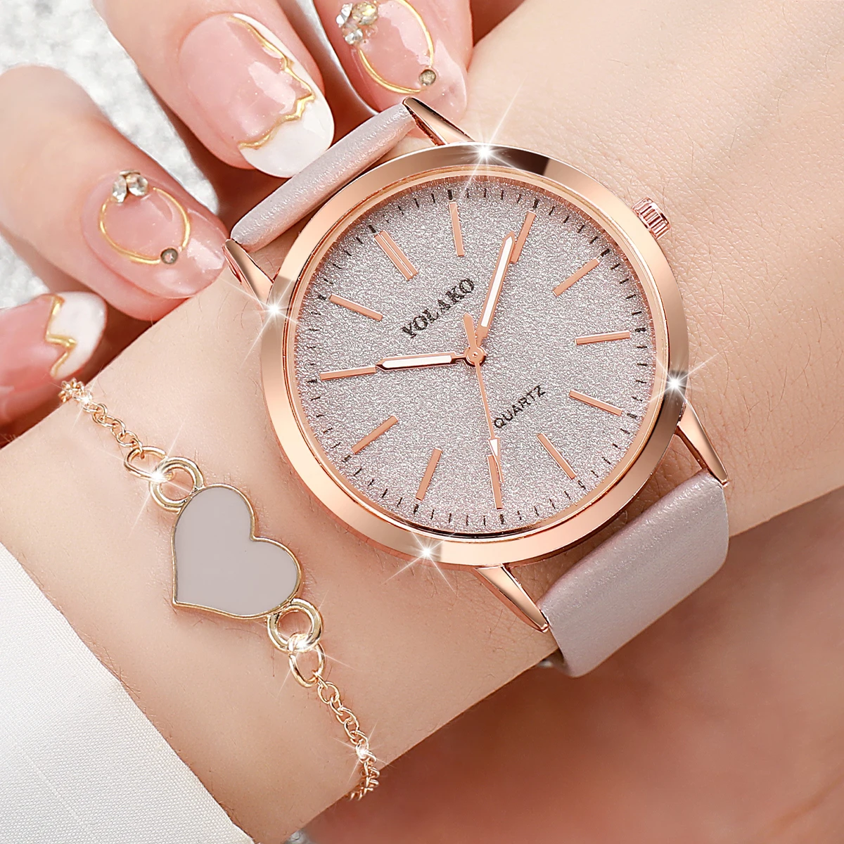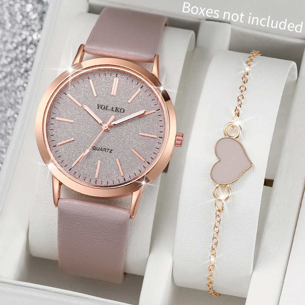 2PCS/Set Fashion Women Leather Strap Wrist Watches Simple Dial Quartz Watch With Heart Bracelet Set (Without Box)
