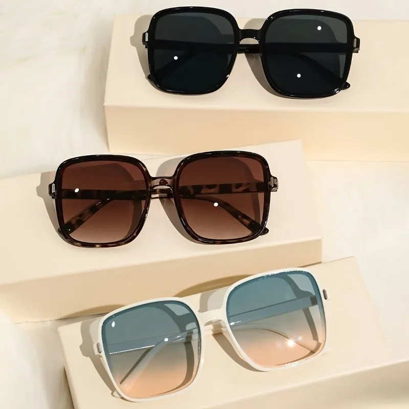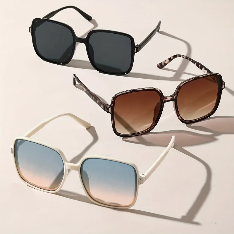 3pcs Women'S Fashion Square Frame Glasses - Stylish Tortoiseshell & Black PC Lenses