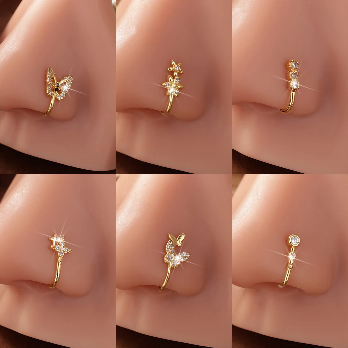 6PCS Fake Nose Ring CZ African Nose Cuffs Gold Fake Nose Piercing Faux Septum Nose Rings Clip On Nose Jewelry For Women