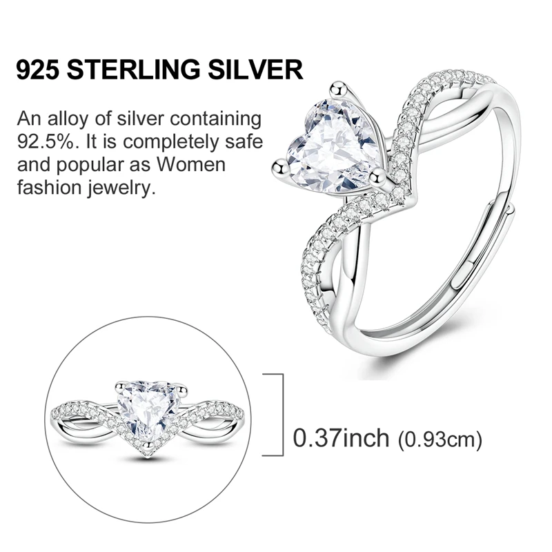 925 Sterling Silver Rings Love Zircon Open Ring Wedding Ring Women Engagement Jewelry Anniversary Gifts