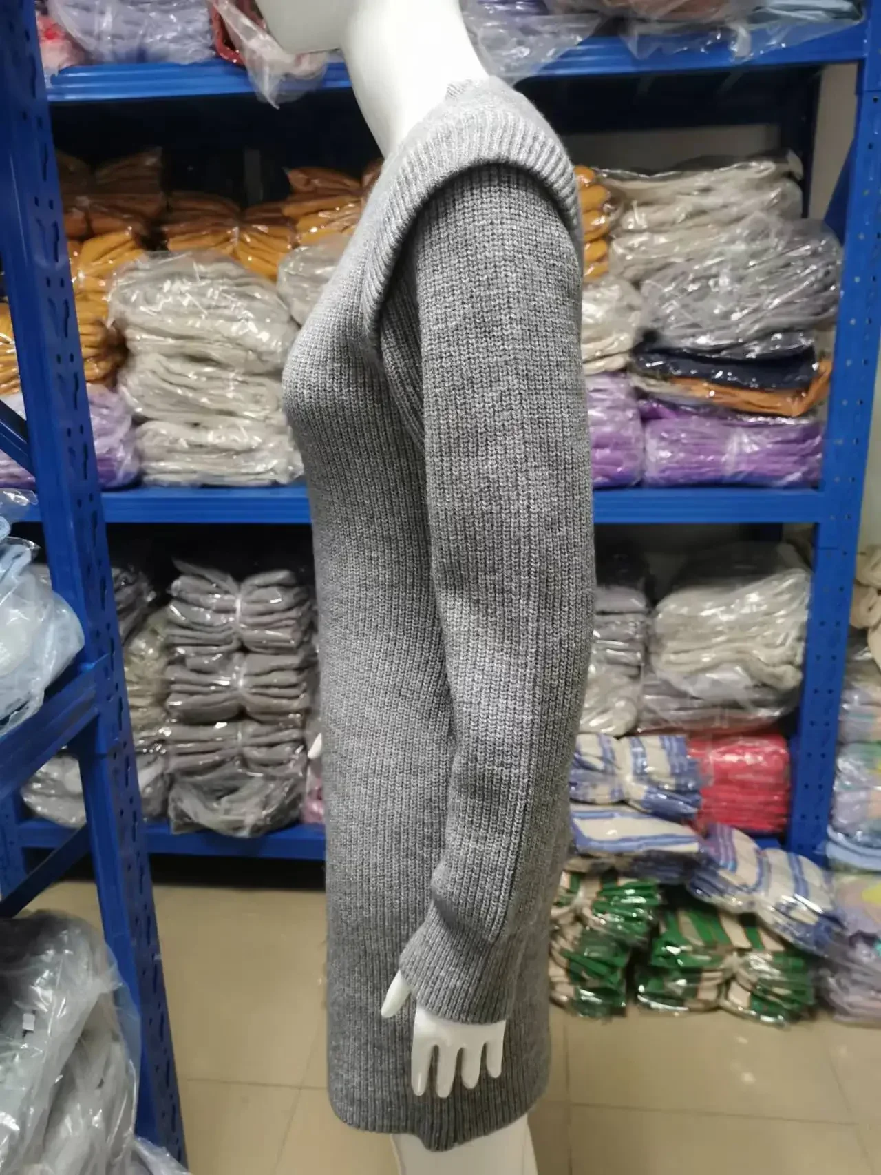 ALLUKASA Spring Autumn Women Loose Sweater Dress Autumn Semi Turtleneck Long Sleeve Stretch Knitted Pullover Wrap Mini Dresses