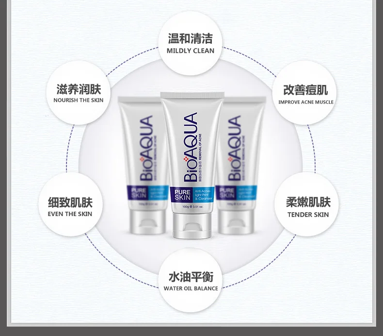BIOAQUA 3pcs/set Acne Treatment Skin Care Sets Anti Acne Oil Control Refreshing Face Cream Facial Cleanser Serum Face Care Set