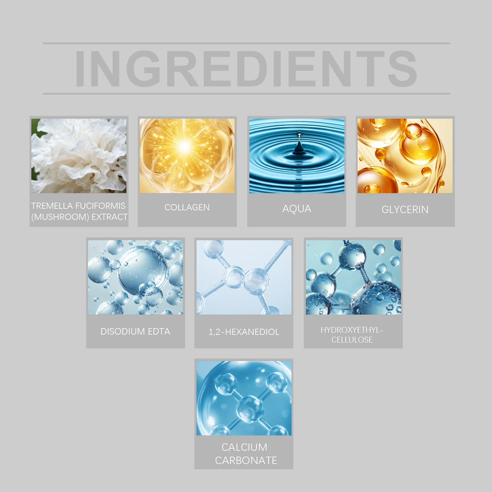 Ingredient: Collagen, Tremella fuciformis extract, calcium carbonate