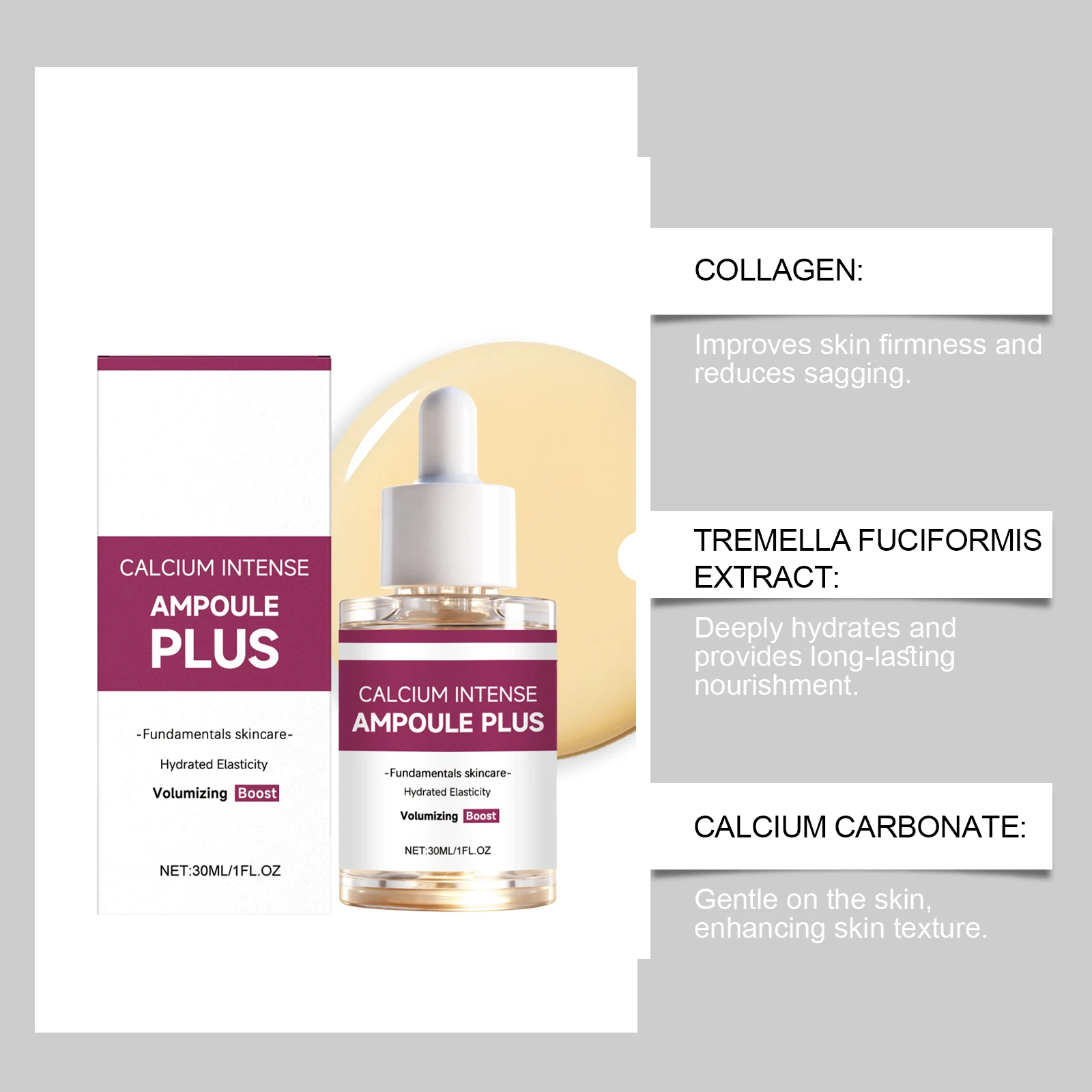 Calcium Intense Ampoule Plus with Collagen Moisturizing Essence Firming Smoothing Brightening Revitalizing Hydrating Face Serum