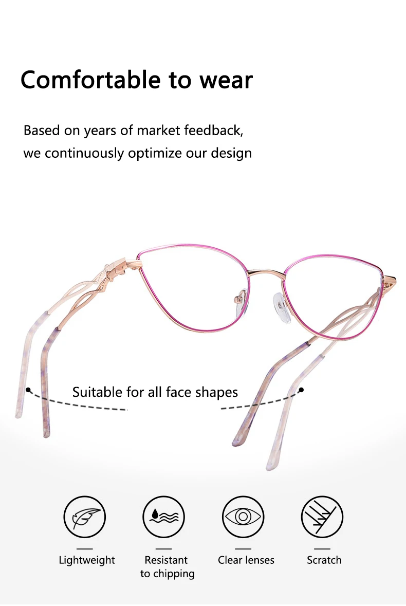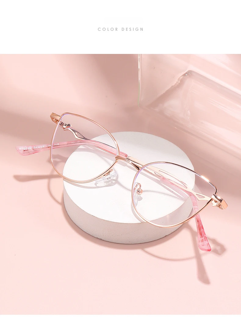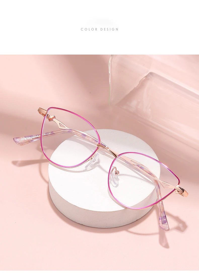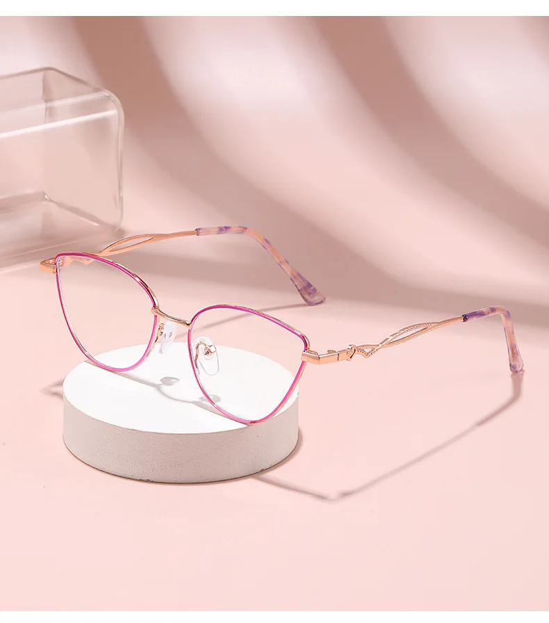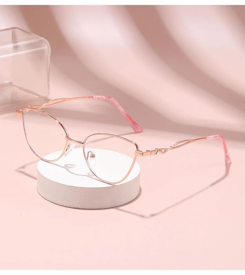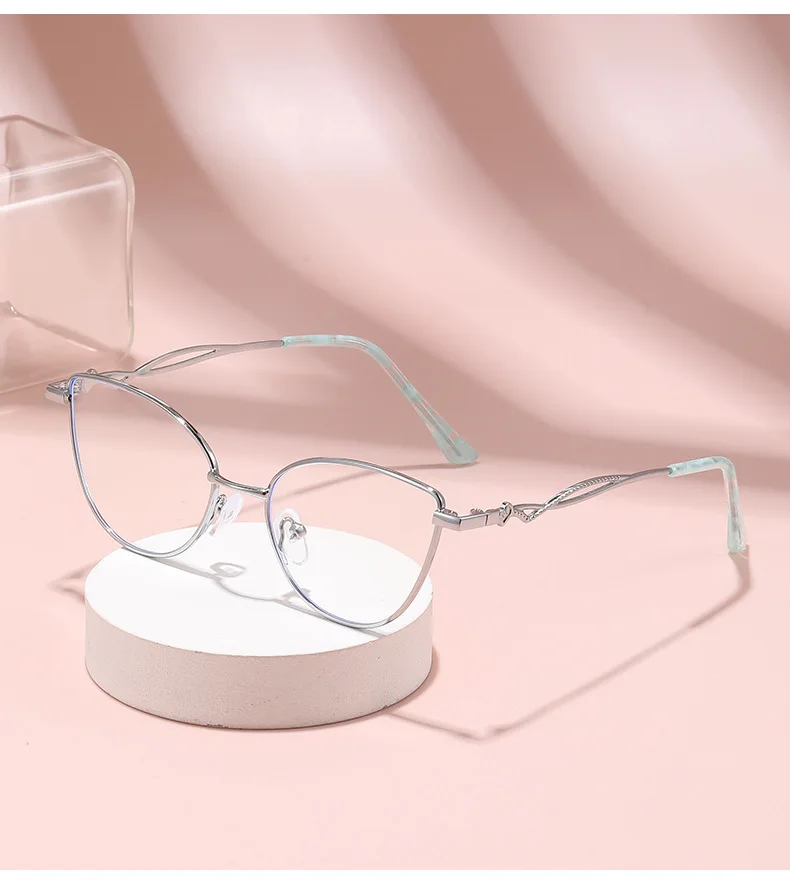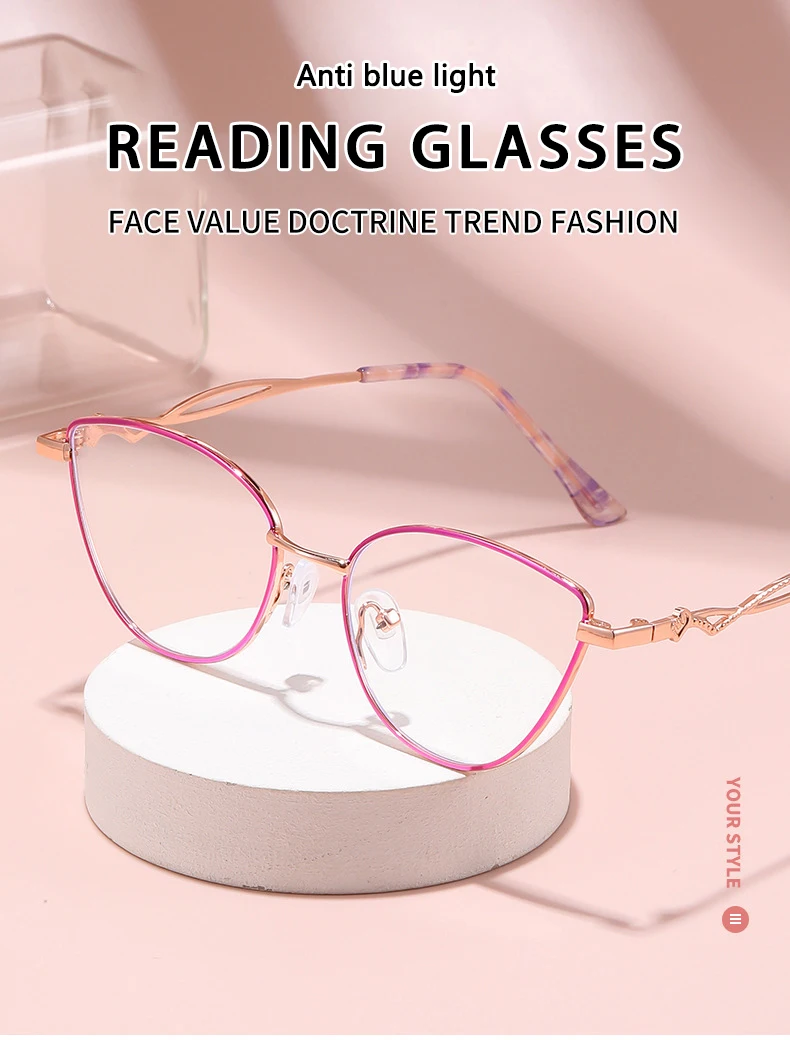 Cat Eye Frame Anti Blue Light Reading Glasses, Fashionable And Youthful, Women's Metal Frame Reading Glasses 9792