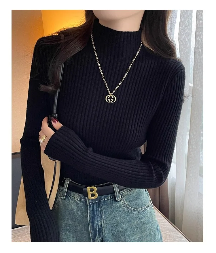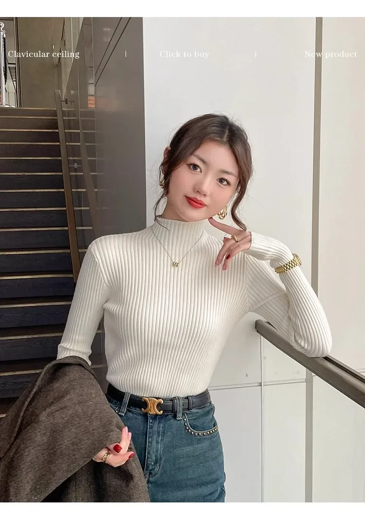 Chic Autumn Winter 2025 Pullovers Women Long Sleeve Casual Turtleneck Warm Basic Sweater Knit Jumpers Solid Color Slim Tops