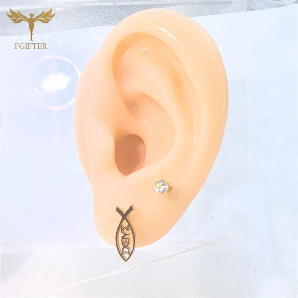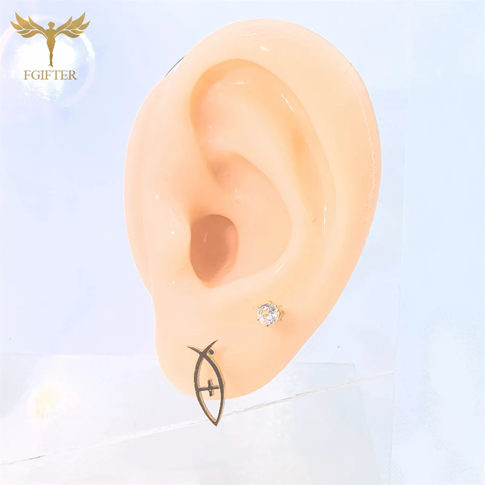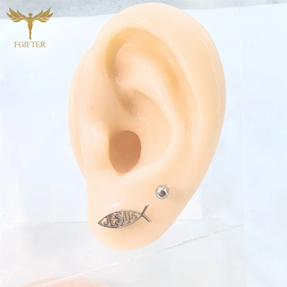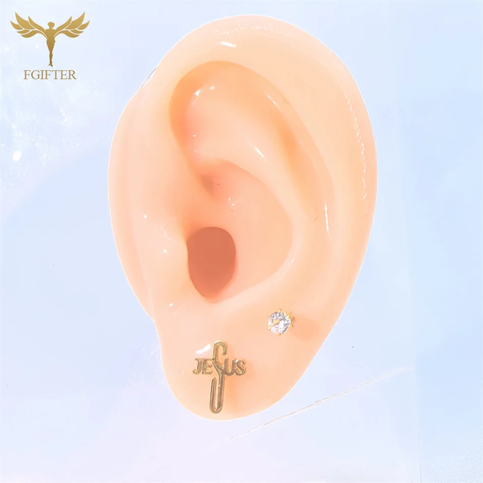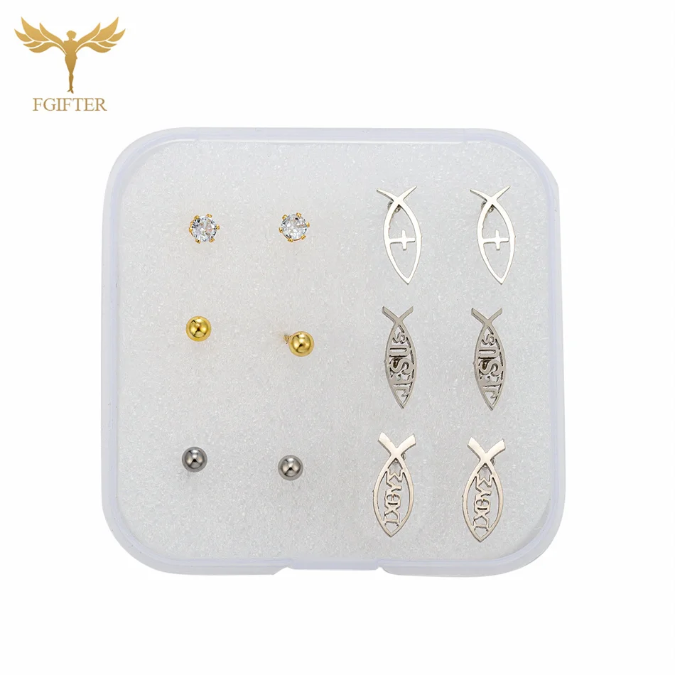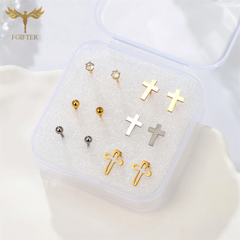 Christian Jesus Cross Earrings Zircon Balls Stainless Steel Stud Earings Set Women Men Jewelry Small Christmas Gifts With Box