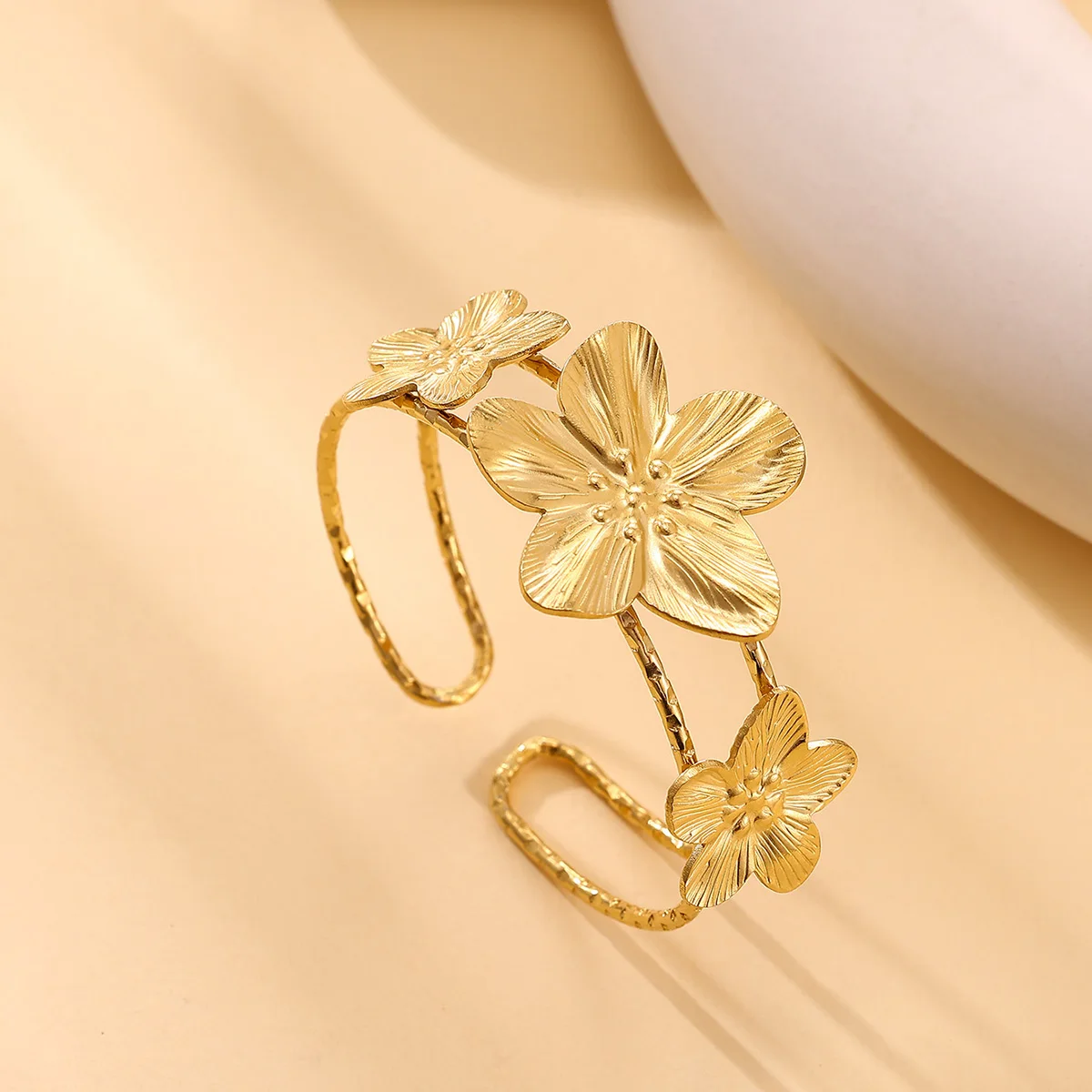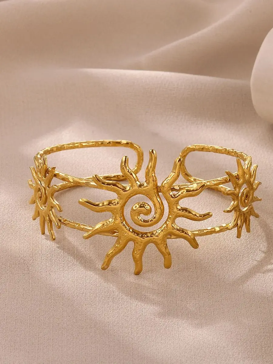 Chunky Adjust Double Layer Cuff Bracelet Women Punk 2025 Fashion Flower Sun Bangle Gold Color Stainless Steel Waterproof Jewelry