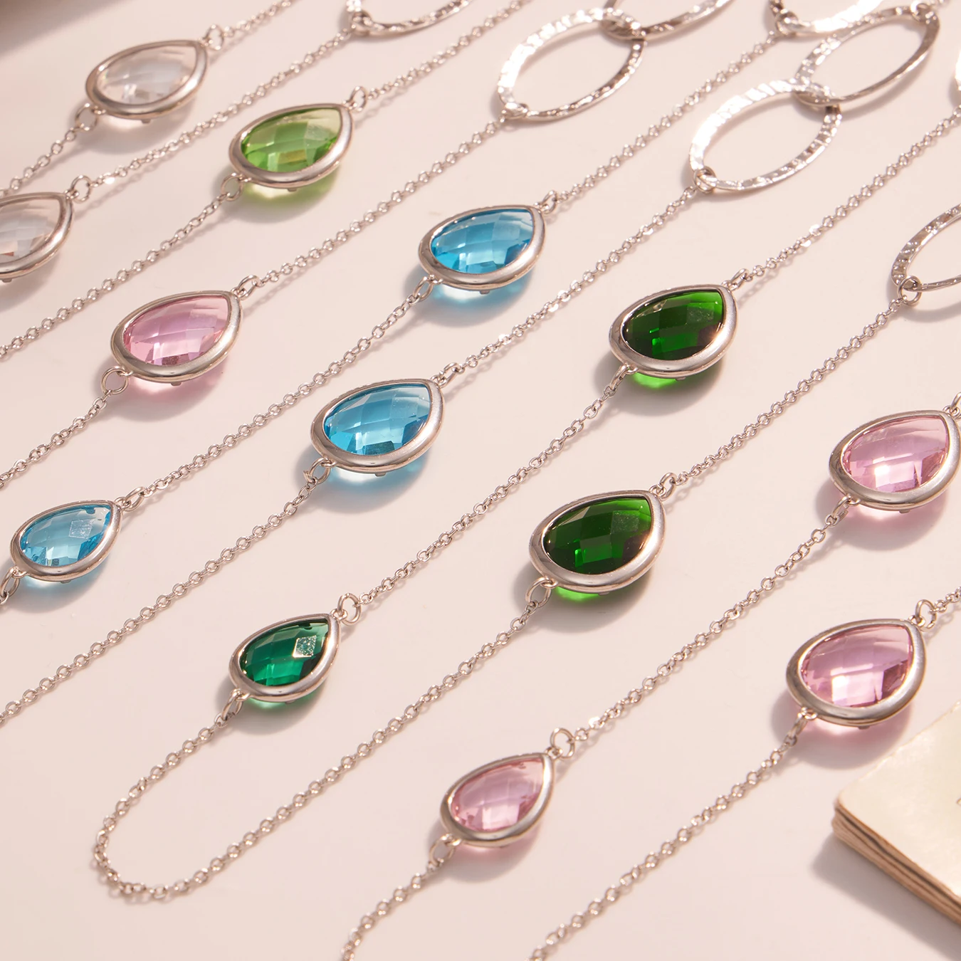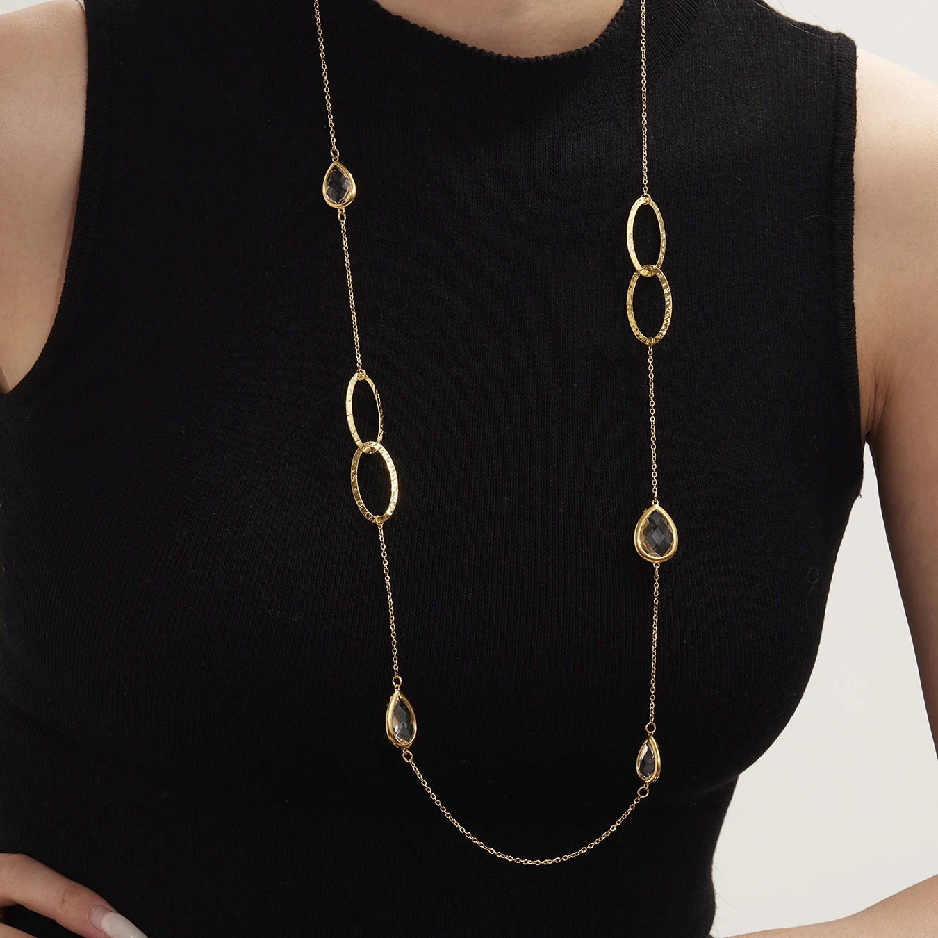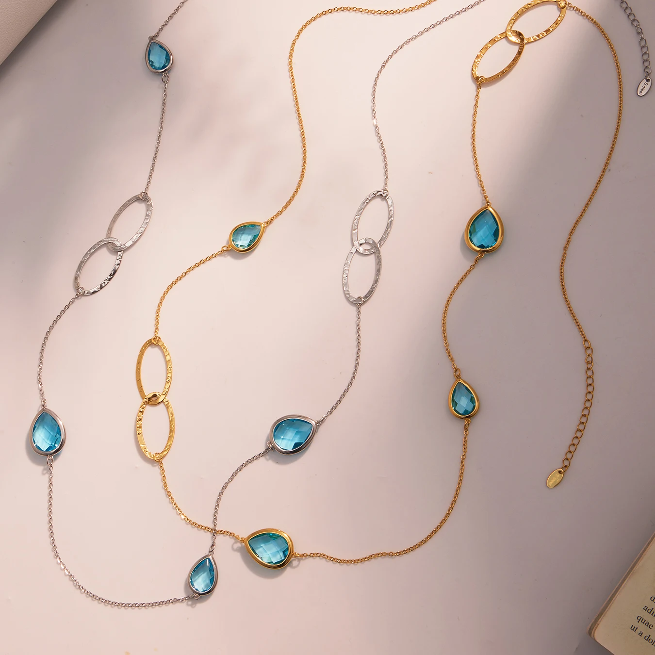 Colorful Glass Water Drop Pendant Necklace for Women's Waterproof Stainless Steel Gold-plated Chain 87cm Long Necklace Jewelry