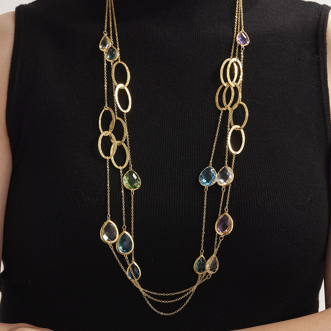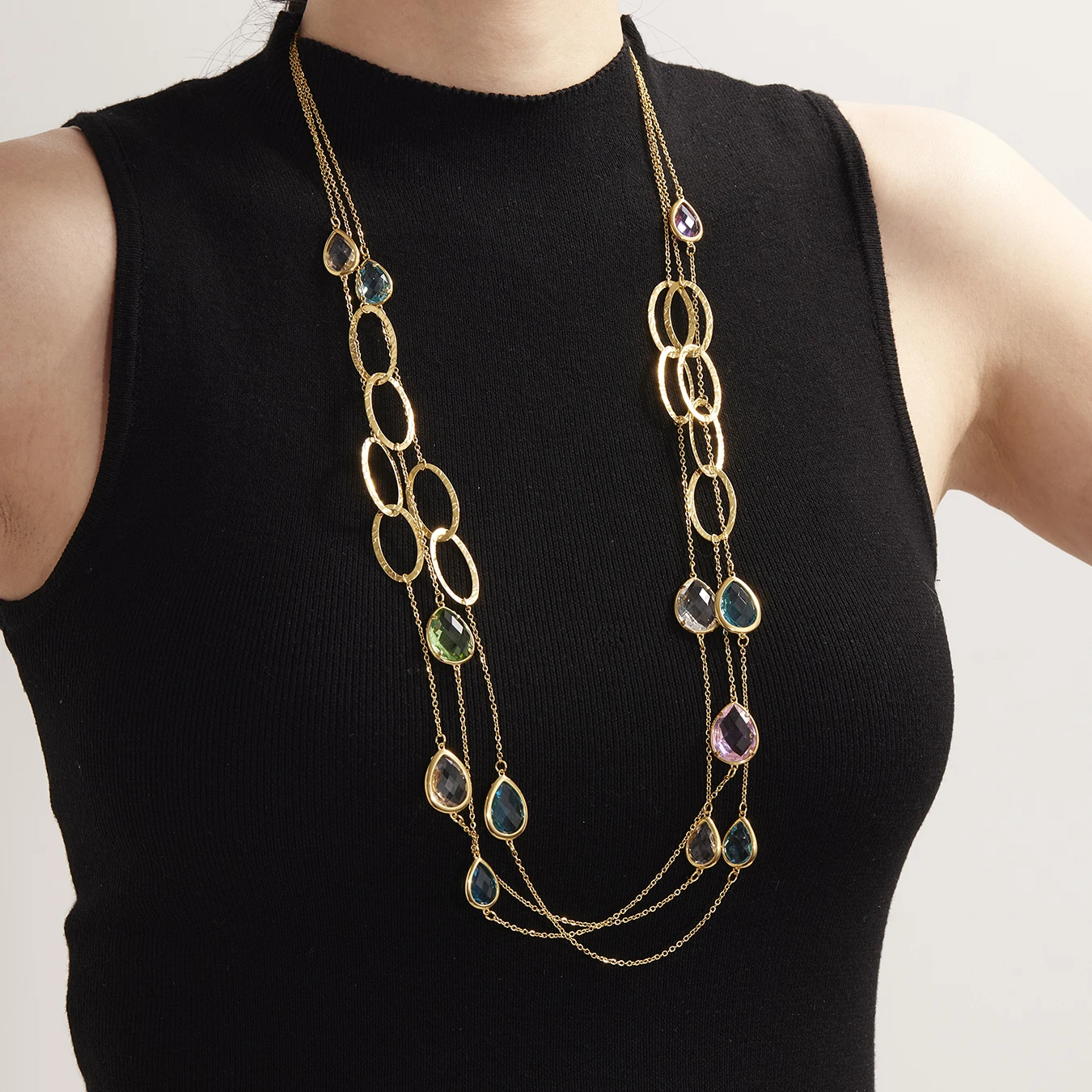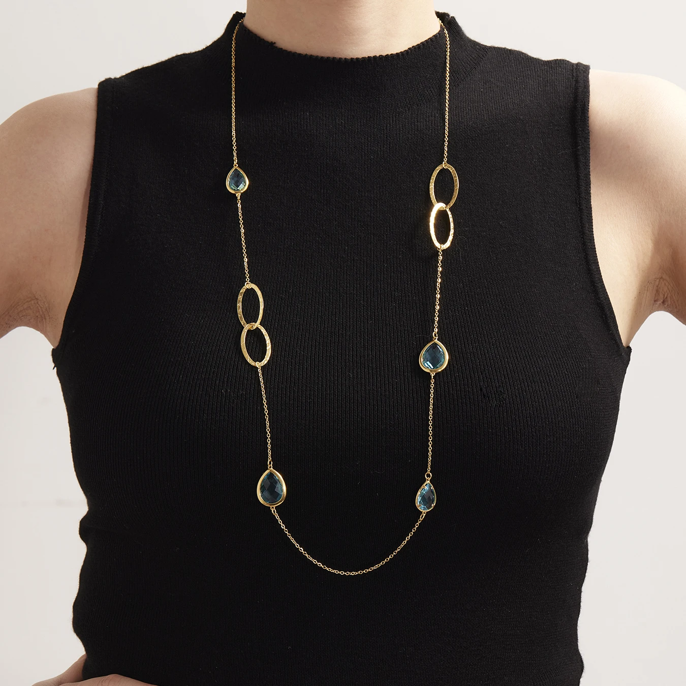 Colorful Glass Water Drop Pendant Necklace for Women's Waterproof Stainless Steel Gold-plated Chain 87cm Long Necklace Jewelry