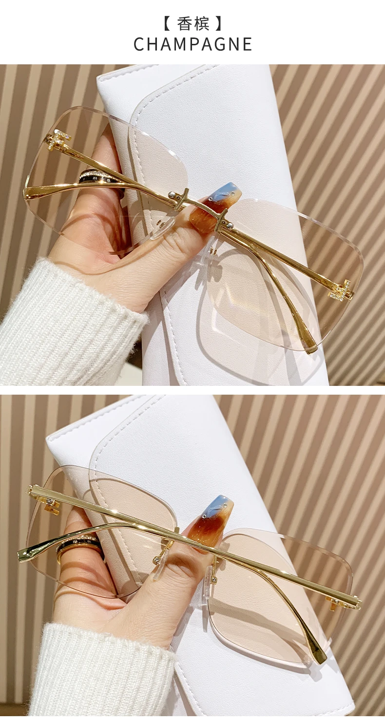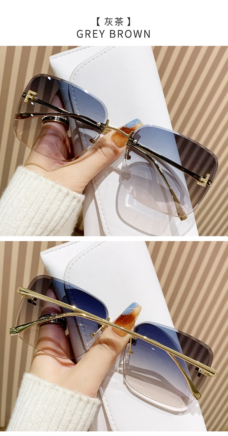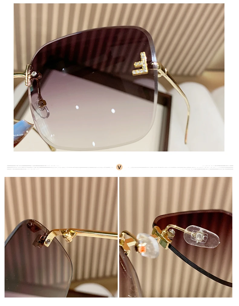 Diamond-in Sunglasses Letter F Frameless Edged Sunglasses Metal Square Large Frame Trendy Glasses Women 90267