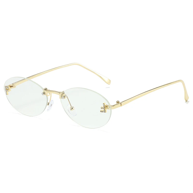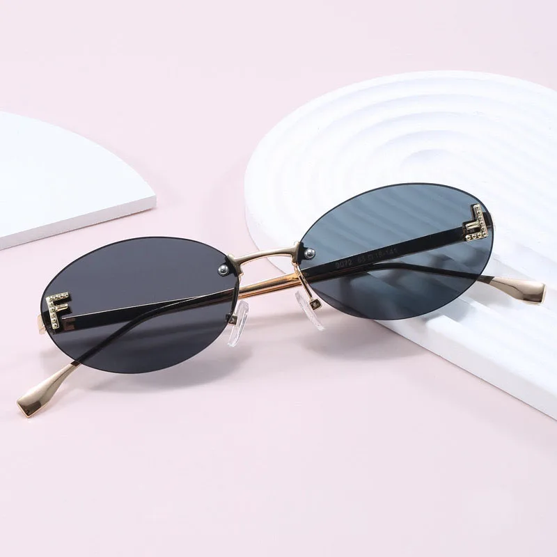 Diamond Letter "F" Rimless Sunglasses Women Luxury Brand Metal Frame Black Small Oval Sun Glasses Unsiex Elegant Shades UV400