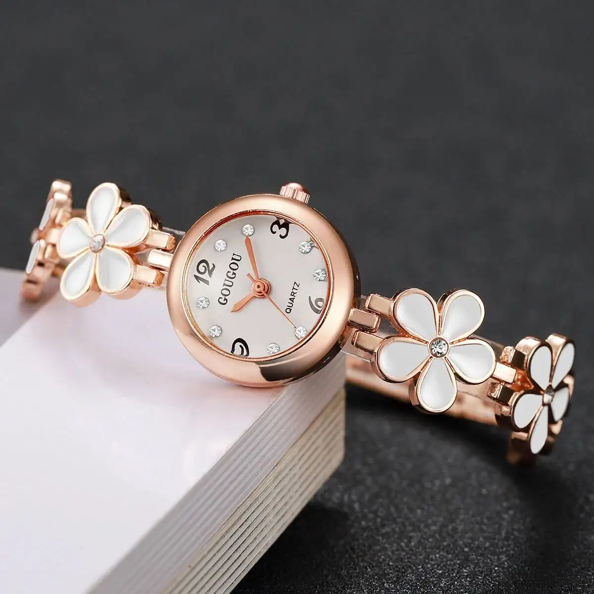 Elegant Flower Bracelet Strap Women Watches Fashion Diamond Arabic Dial Ladies Wristwatches Reloj Mujer(Without Box)