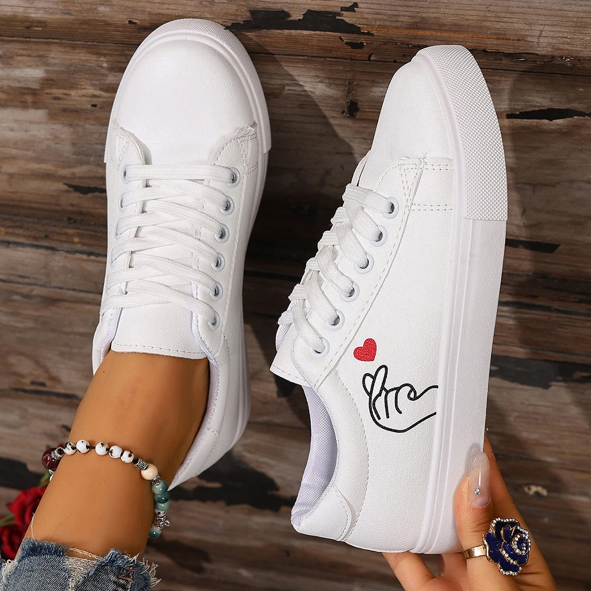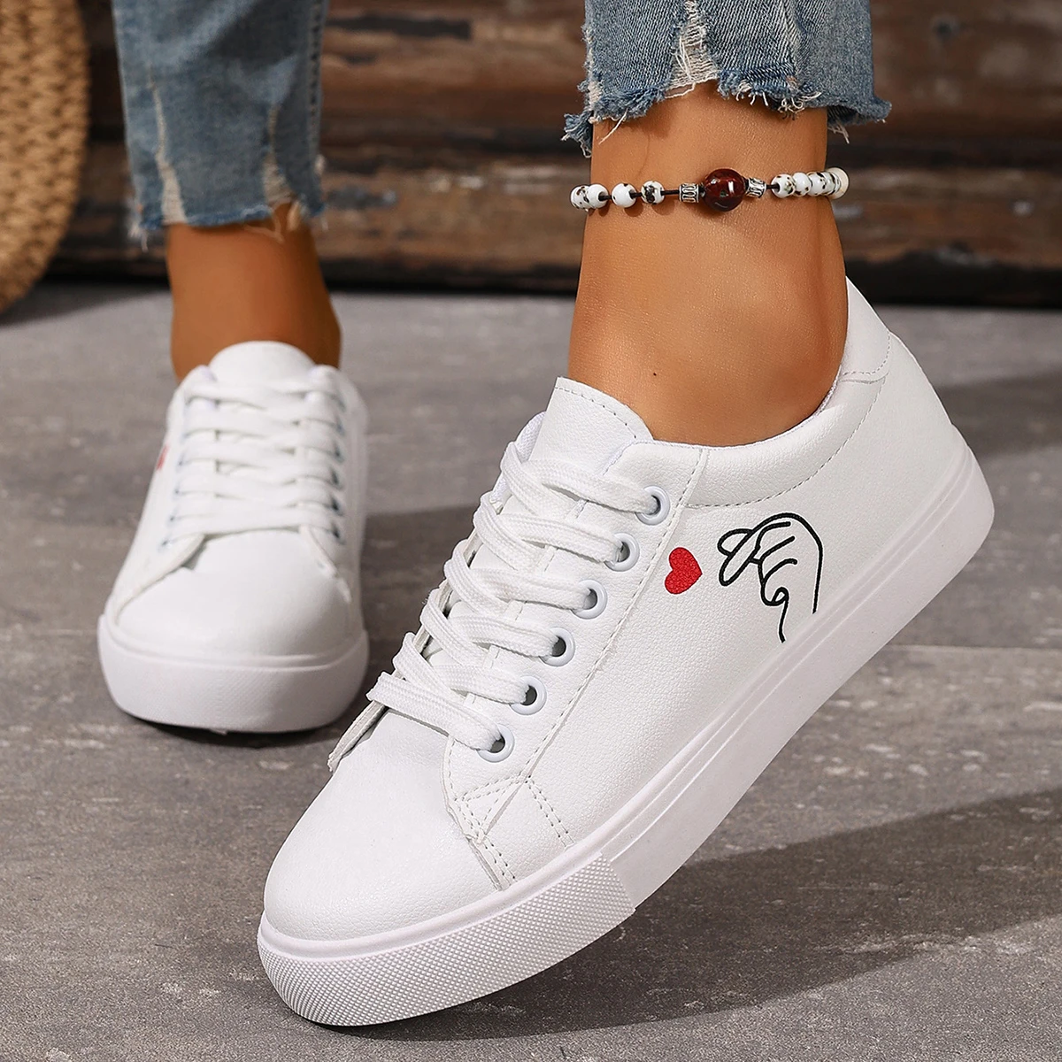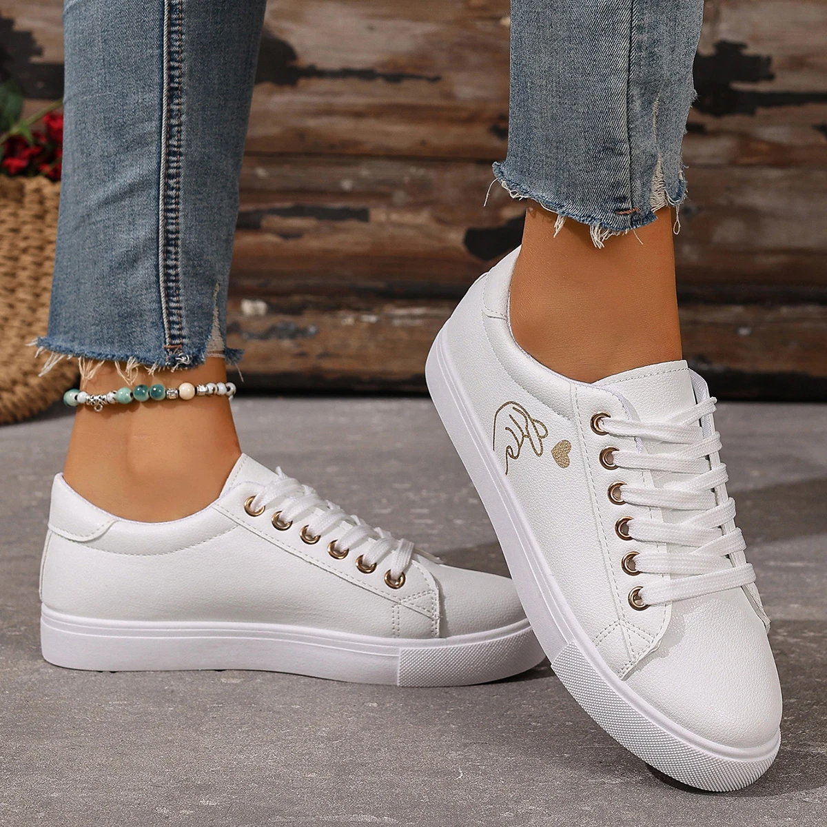 Fashion White Breathable Women Running Shoes New Spring Autumn Embroidered Flower Lace-Up Casual Sneakers Zapatos De Mujer