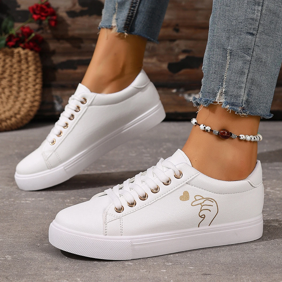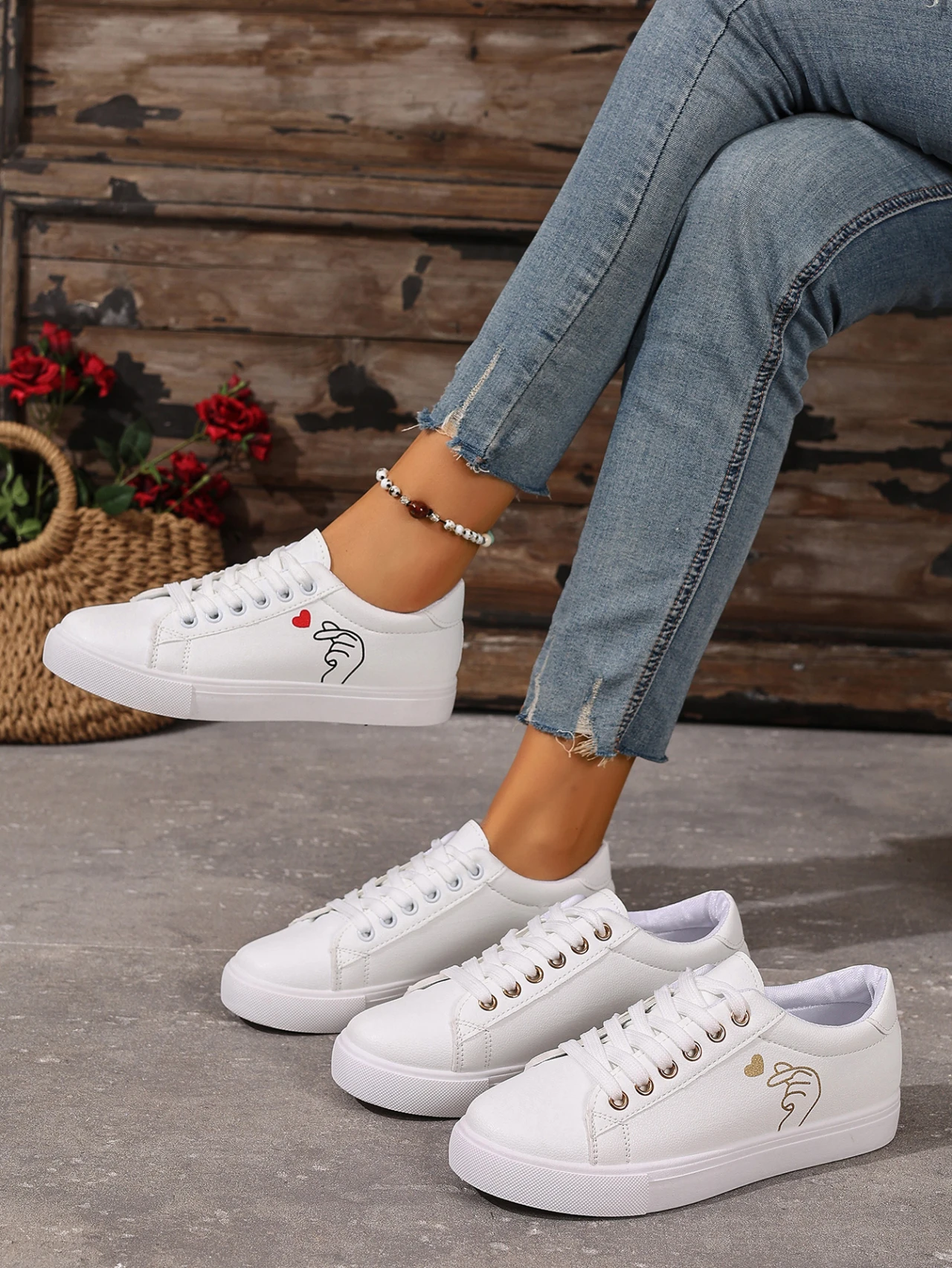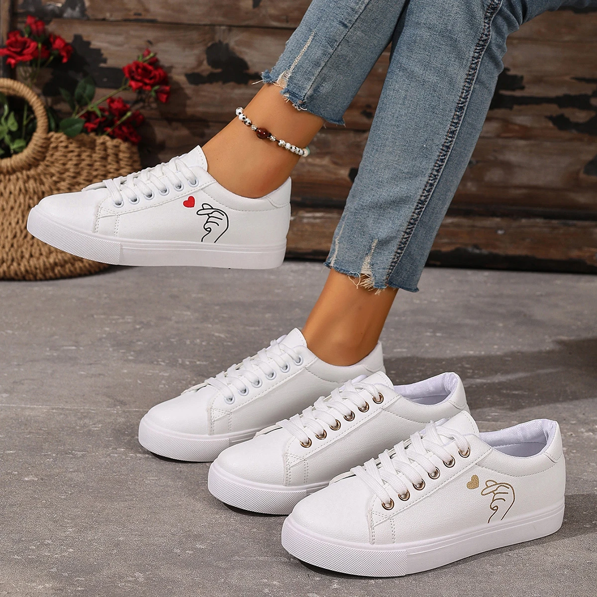 Fashion White Breathable Women Running Shoes New Spring Autumn Embroidered Flower Lace-Up Casual Sneakers Zapatos De Mujer