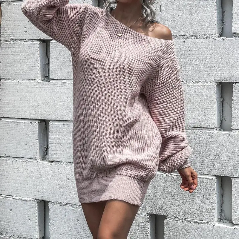 High Quality Custom Solid Color Women's Long Sleeve Dress Casual O-neck Loose Sweater Dress For Women