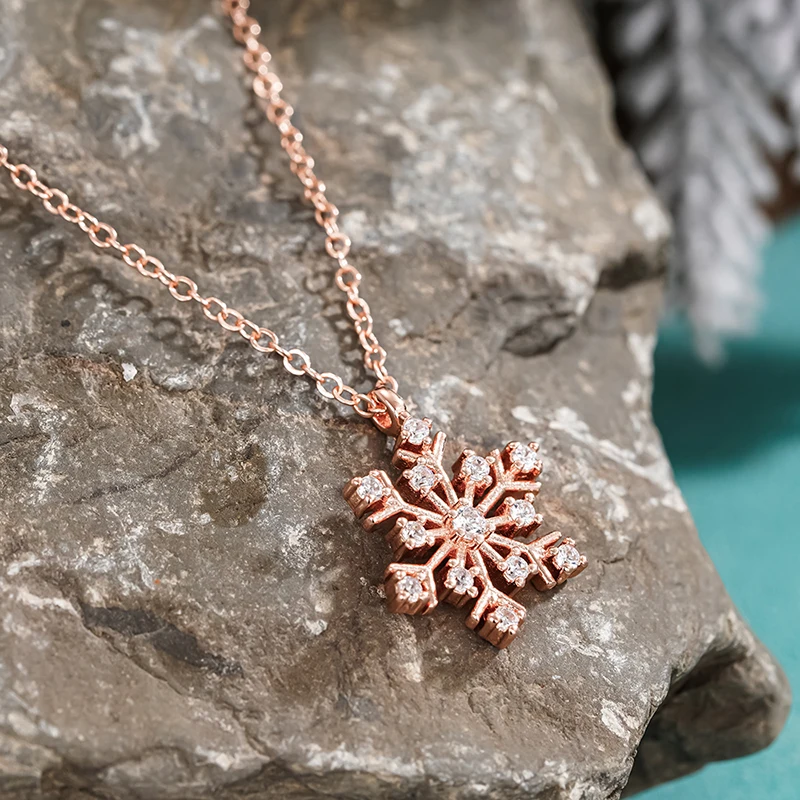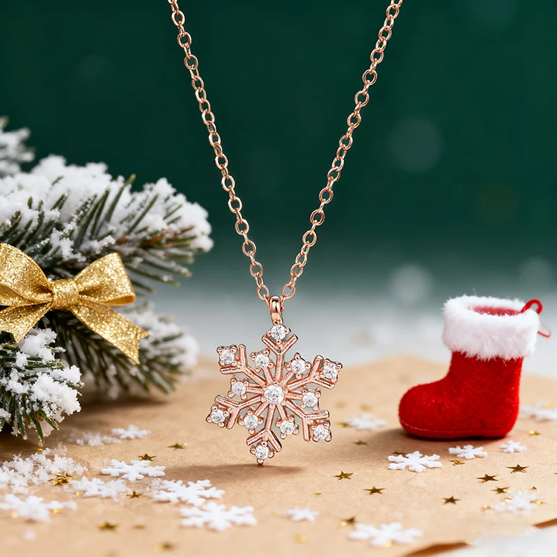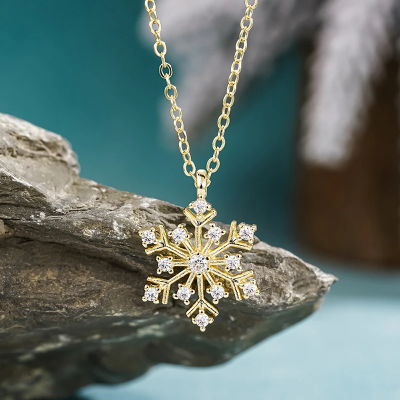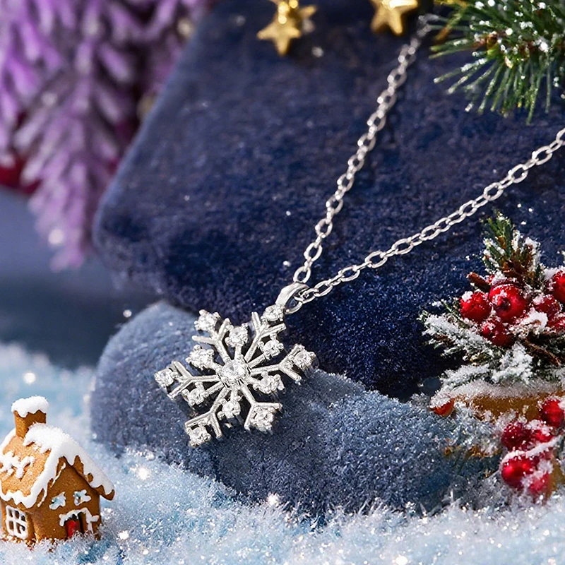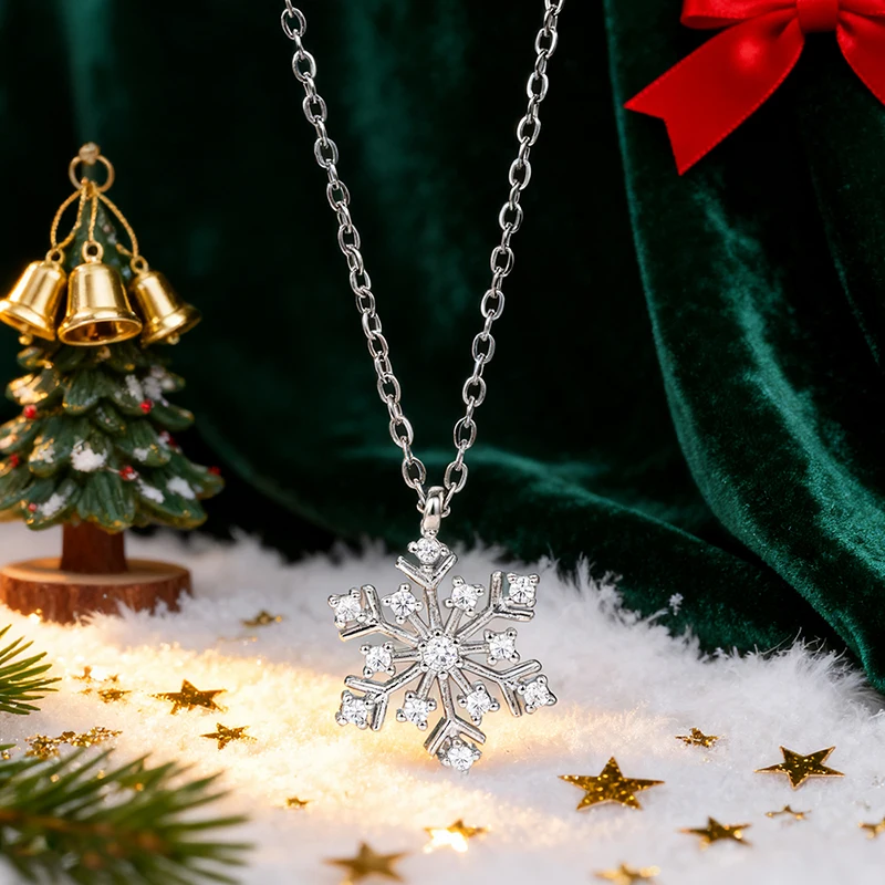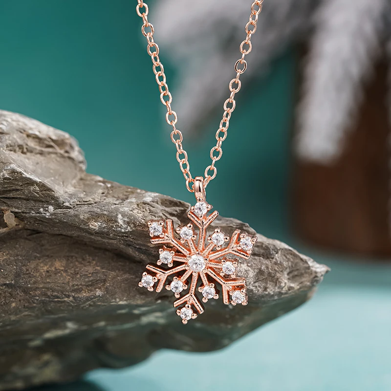 Huitan Christmas Snowflake Necklace for Women Luxury Paved Dazzling Crystal CZ Stones Fancy Winter Accessories Fashion Jewelry