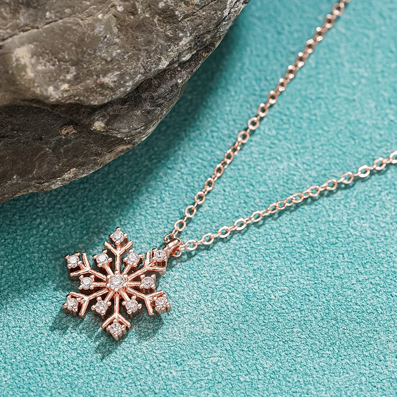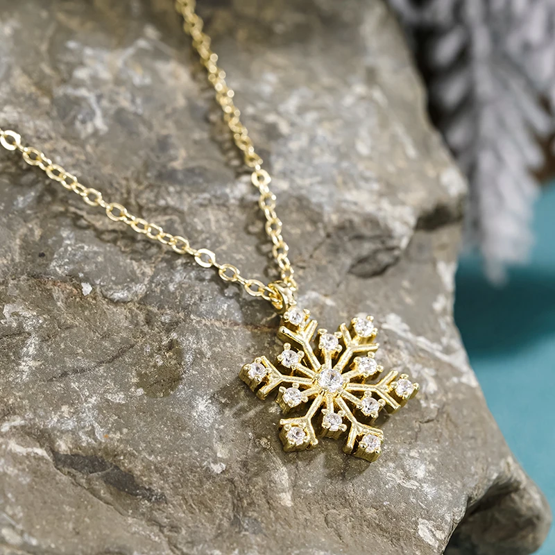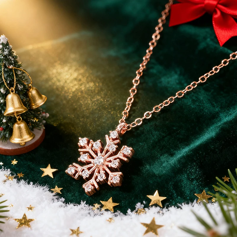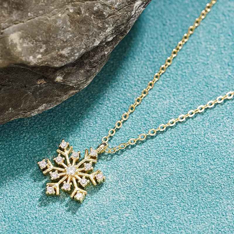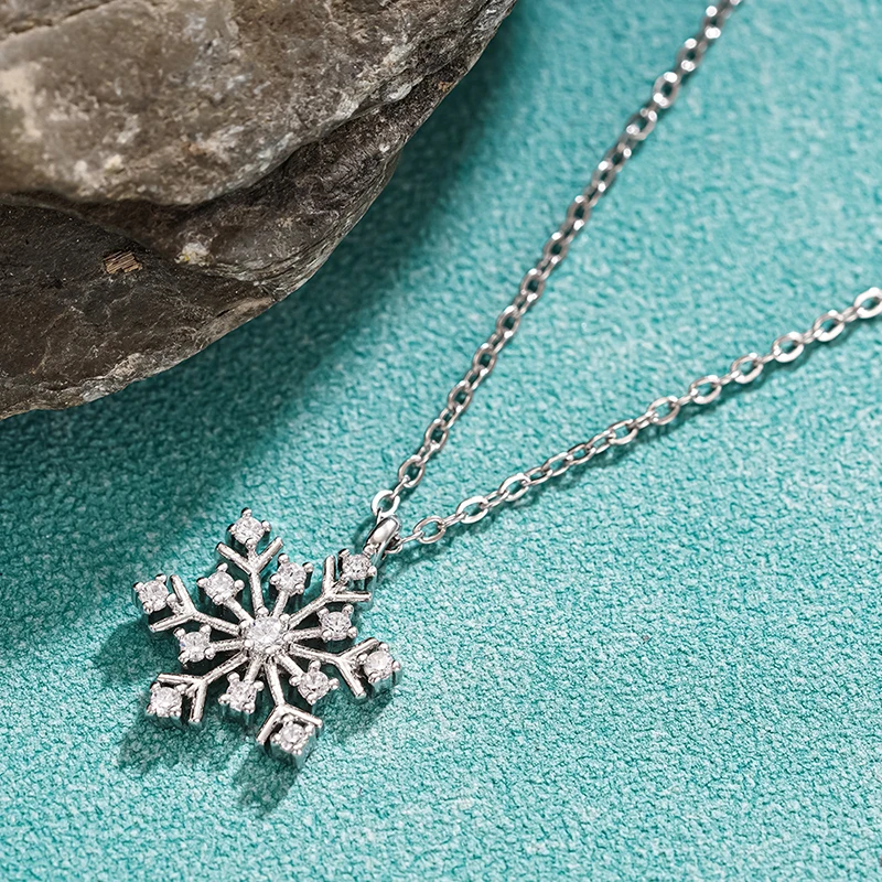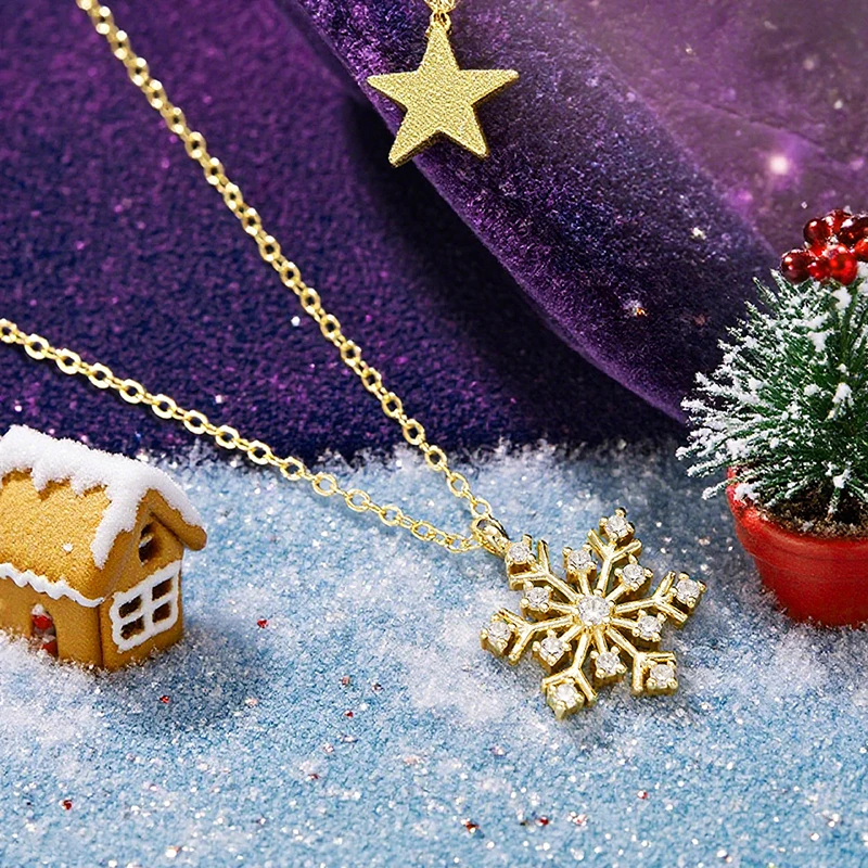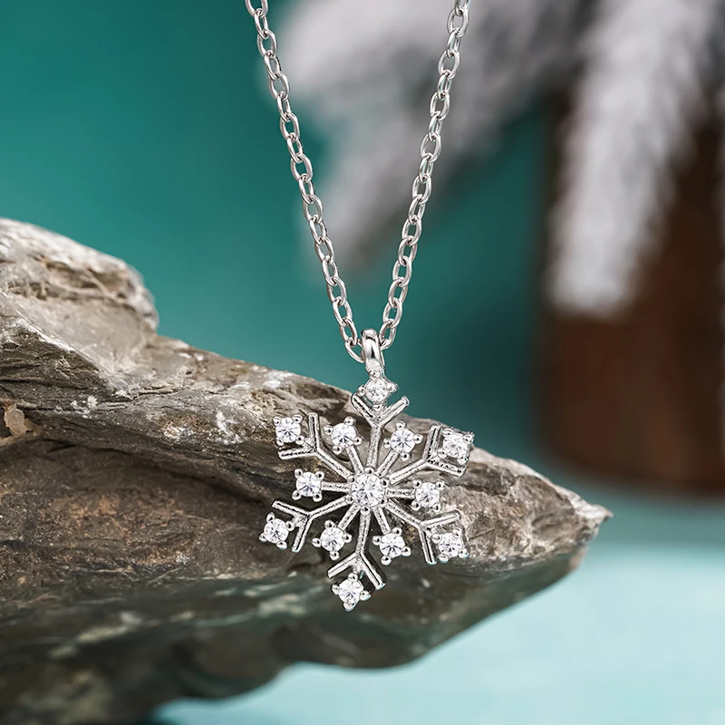 Huitan Christmas Snowflake Necklace for Women Luxury Paved Dazzling Crystal CZ Stones Fancy Winter Accessories Fashion Jewelry