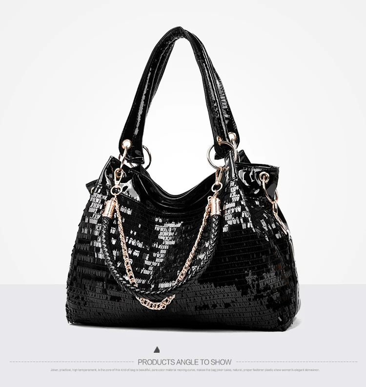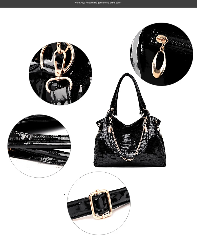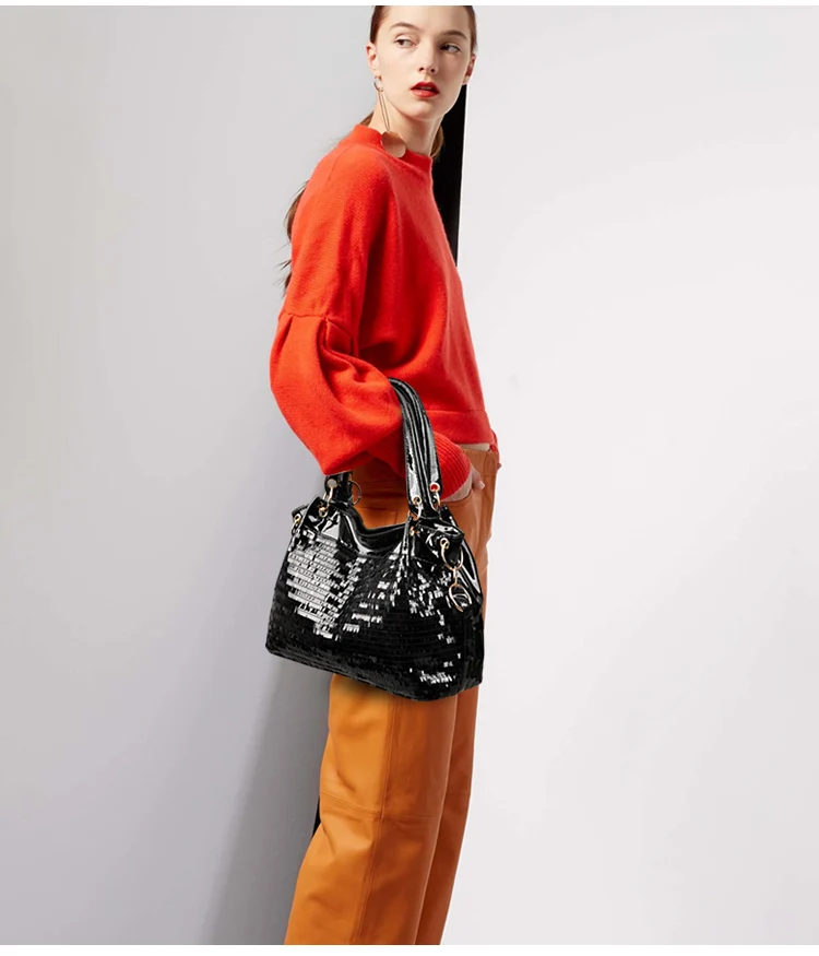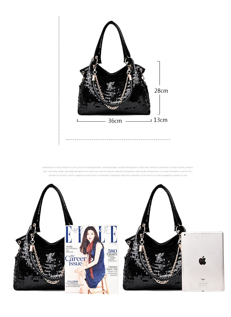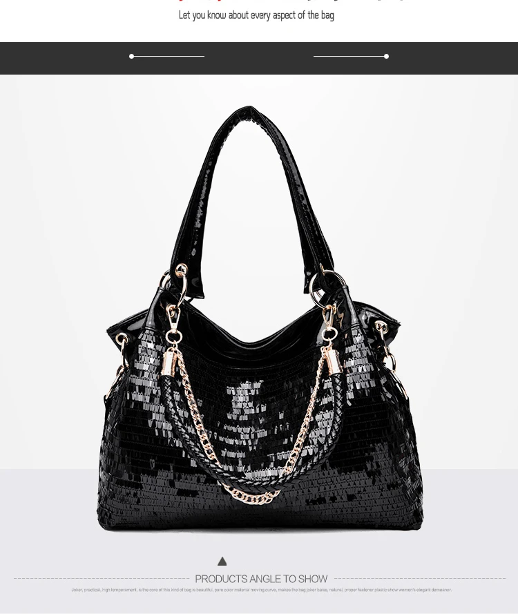 Large Capacity Handbag Fashion Sequins PU Casual One Shoulder Crossbody Bag European Style Luxury High Street Shopping Tote Bag
