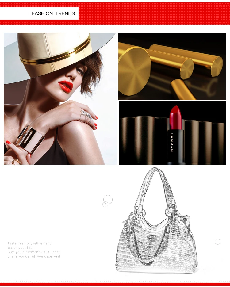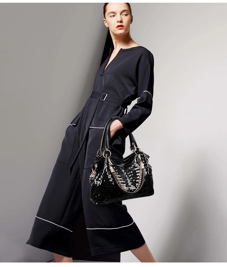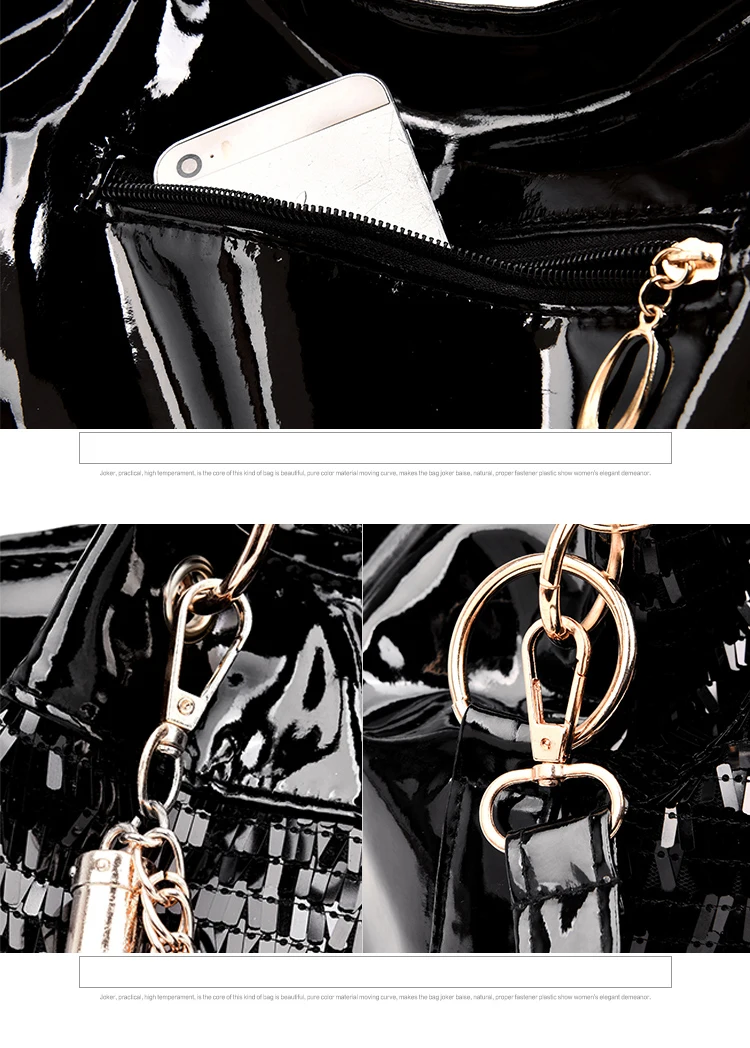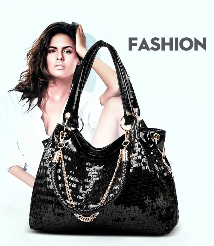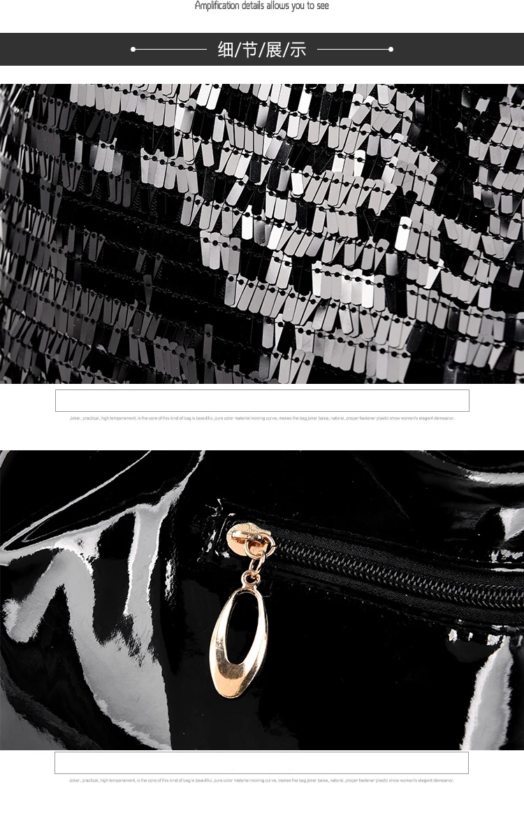 Large Capacity Handbag Fashion Sequins PU Casual One Shoulder Crossbody Bag European Style Luxury High Street Shopping Tote Bag