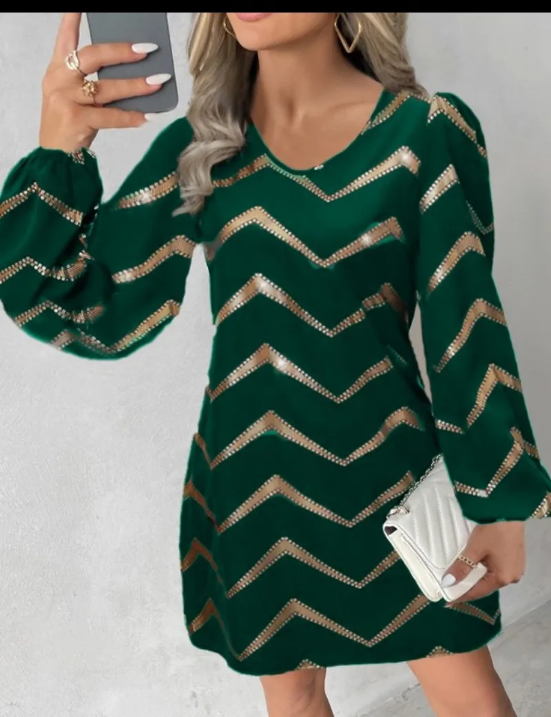 Long Sleeved Fashion U-neck Bubble Sleeve Dress Women's Clothing Elegant and Versatile Trendy Commuter
