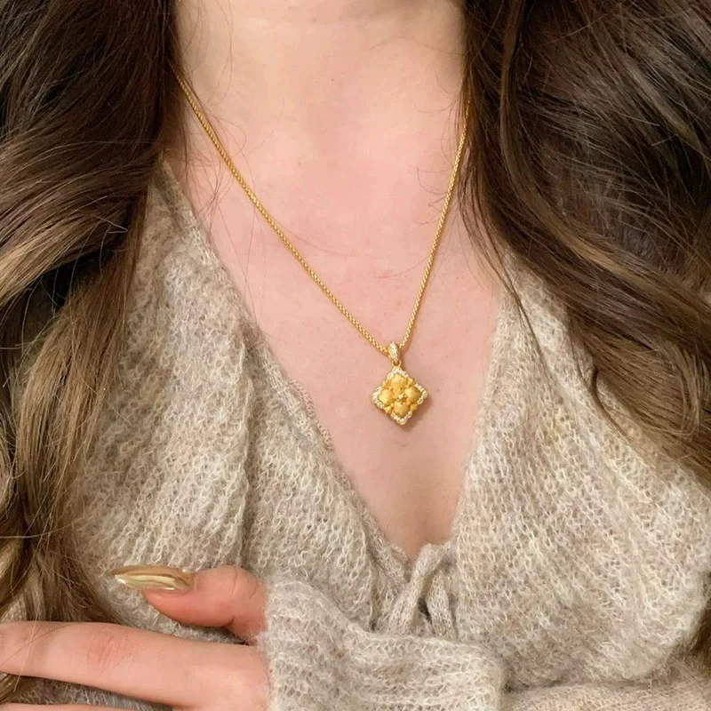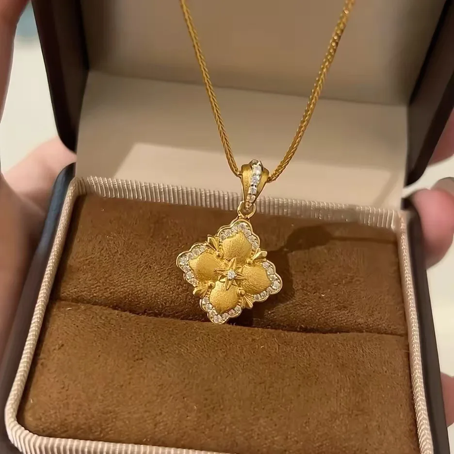 Luxury 24K real gold necklace Italian brushed craft au9999 gold retro palace Buqi style autumn and winter collarbone chain