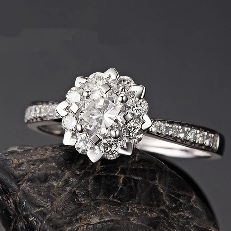 Luxury 925 Sterling Silver Classic Ring for Women snowflake jewelry simple 30ct diamond ring imitation diamond women's ring