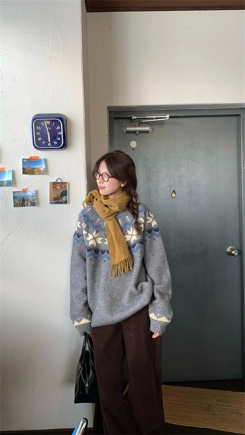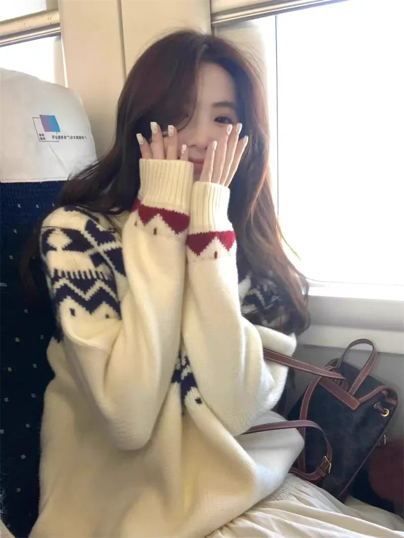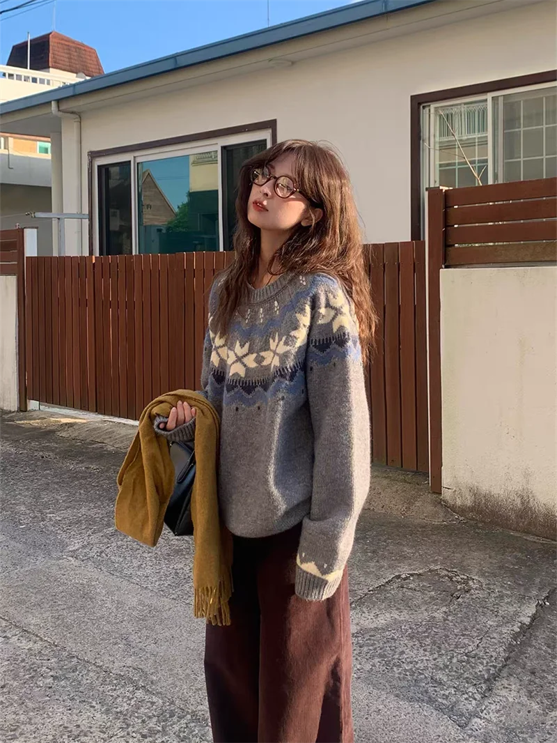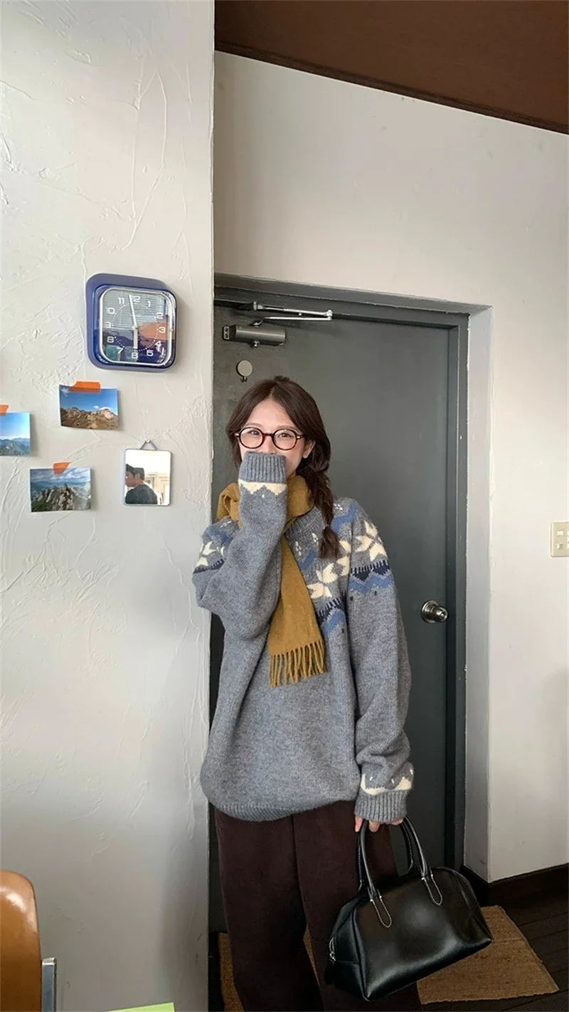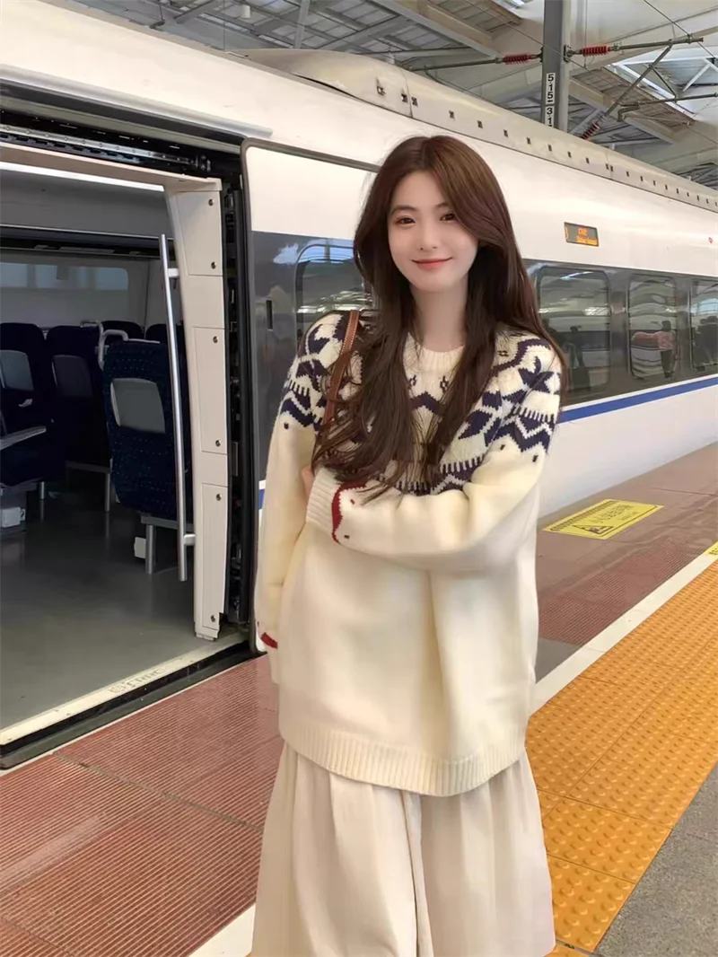 New Autumn Winter Printing Pullovers Knitted Sweater Women Casual Loose Long Sleeve Women's Sweaters Fashion Winter Clothes