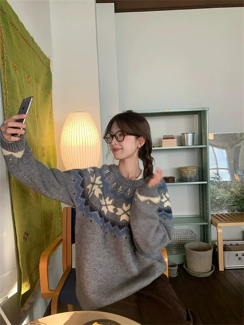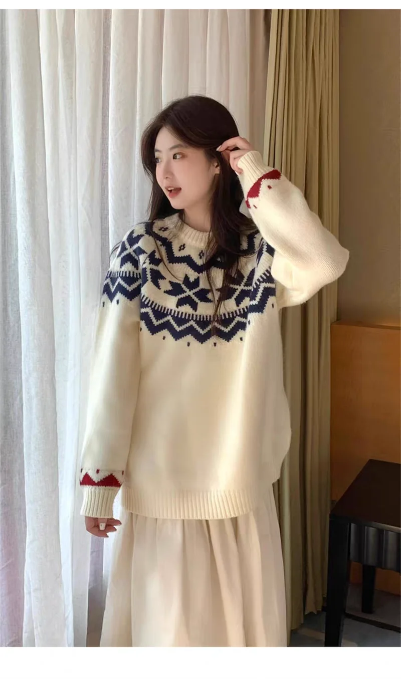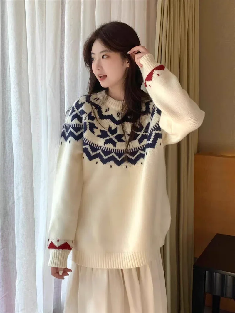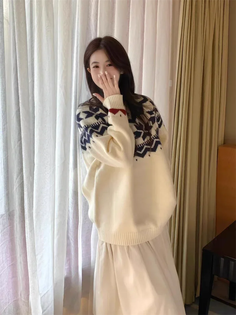 New Autumn Winter Printing Pullovers Knitted Sweater Women Casual Loose Long Sleeve Women's Sweaters Fashion Winter Clothes