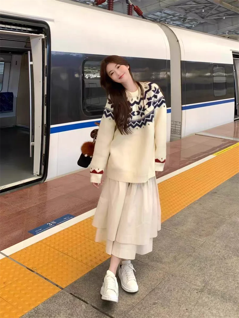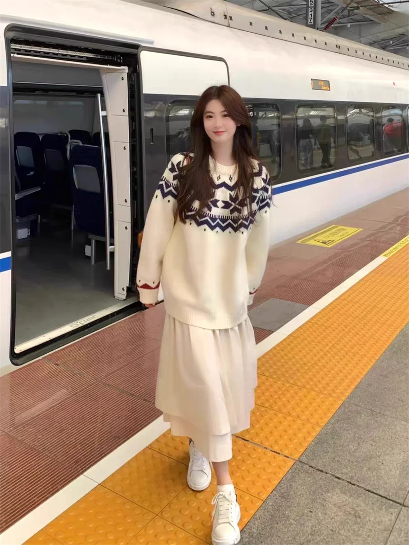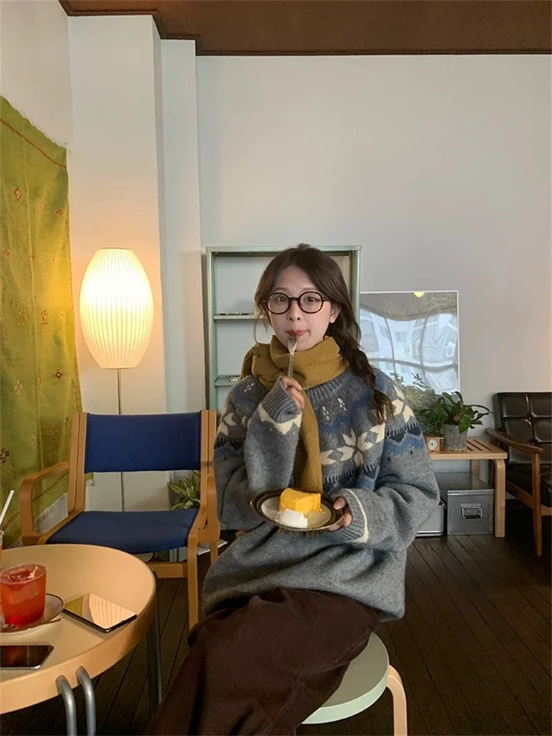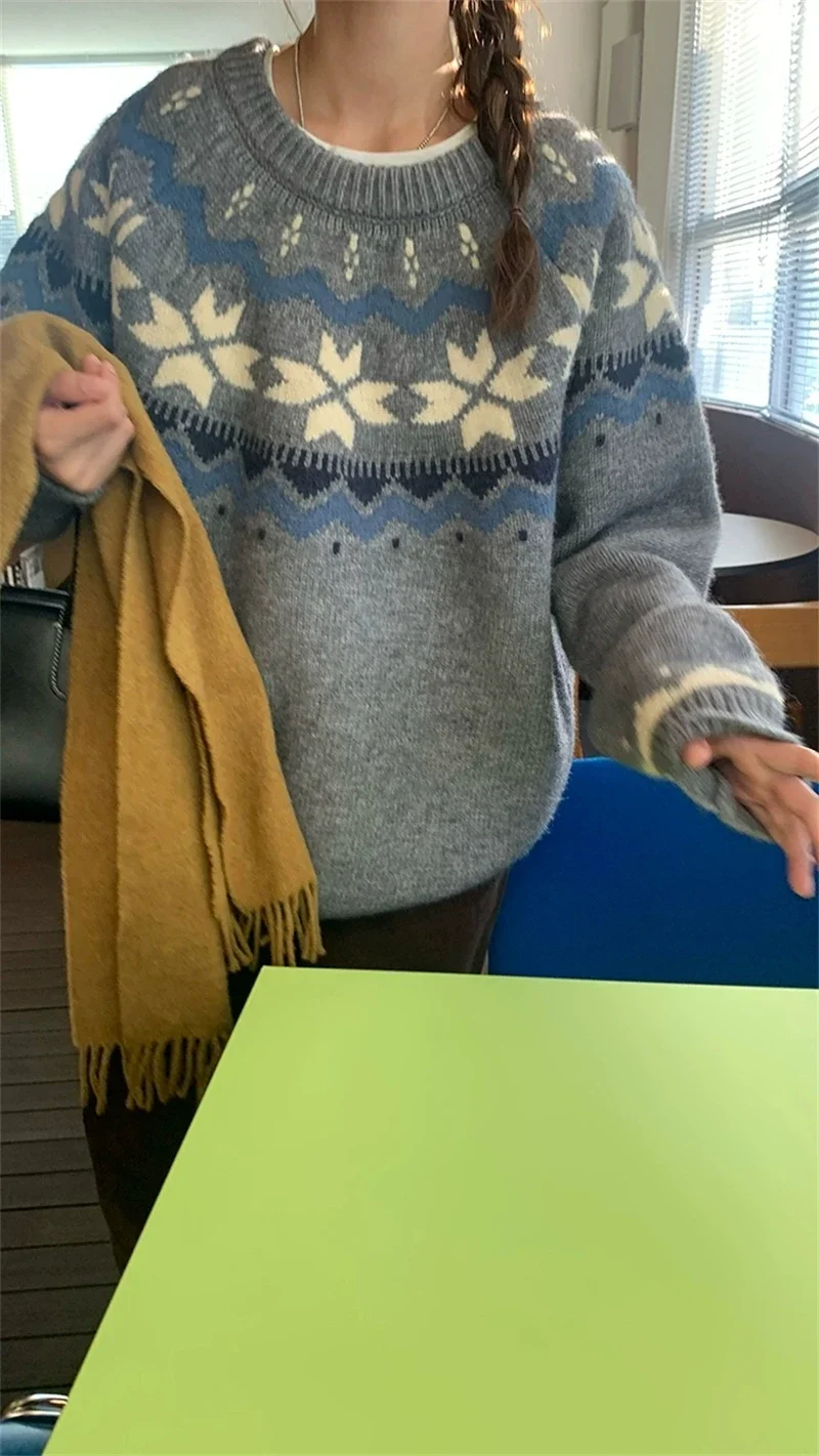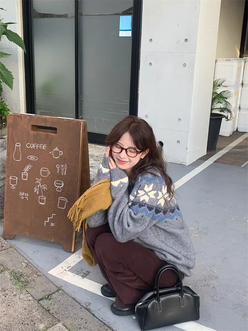 New Autumn Winter Printing Pullovers Knitted Sweater Women Casual Loose Long Sleeve Women's Sweaters Fashion Winter Clothes