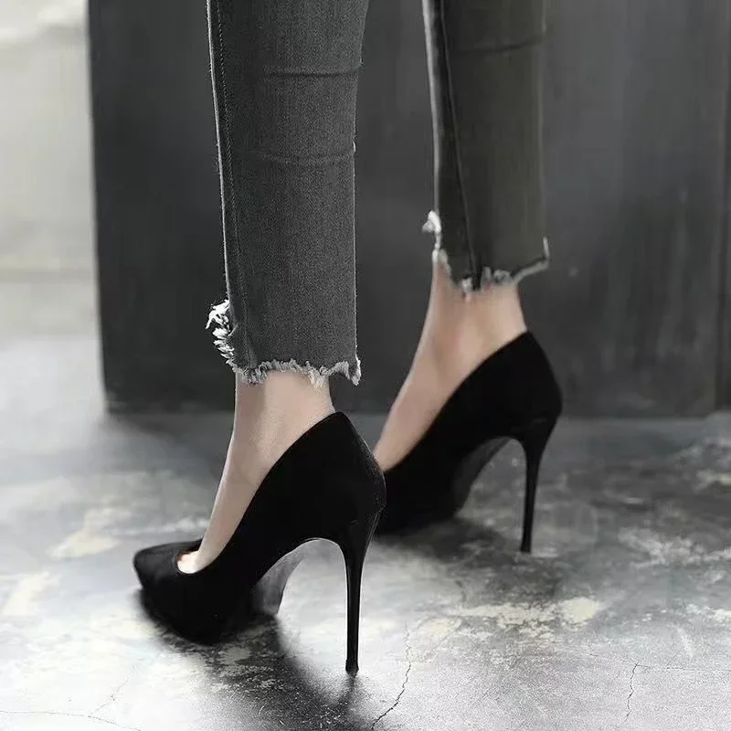 New Fashion women's shoes Sexy black high heels Sharp pointed suede pumps Elegant Shallow Mouth Shoes