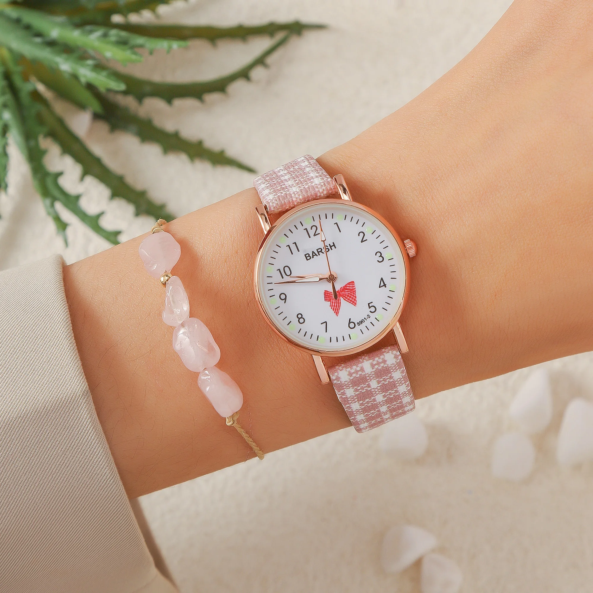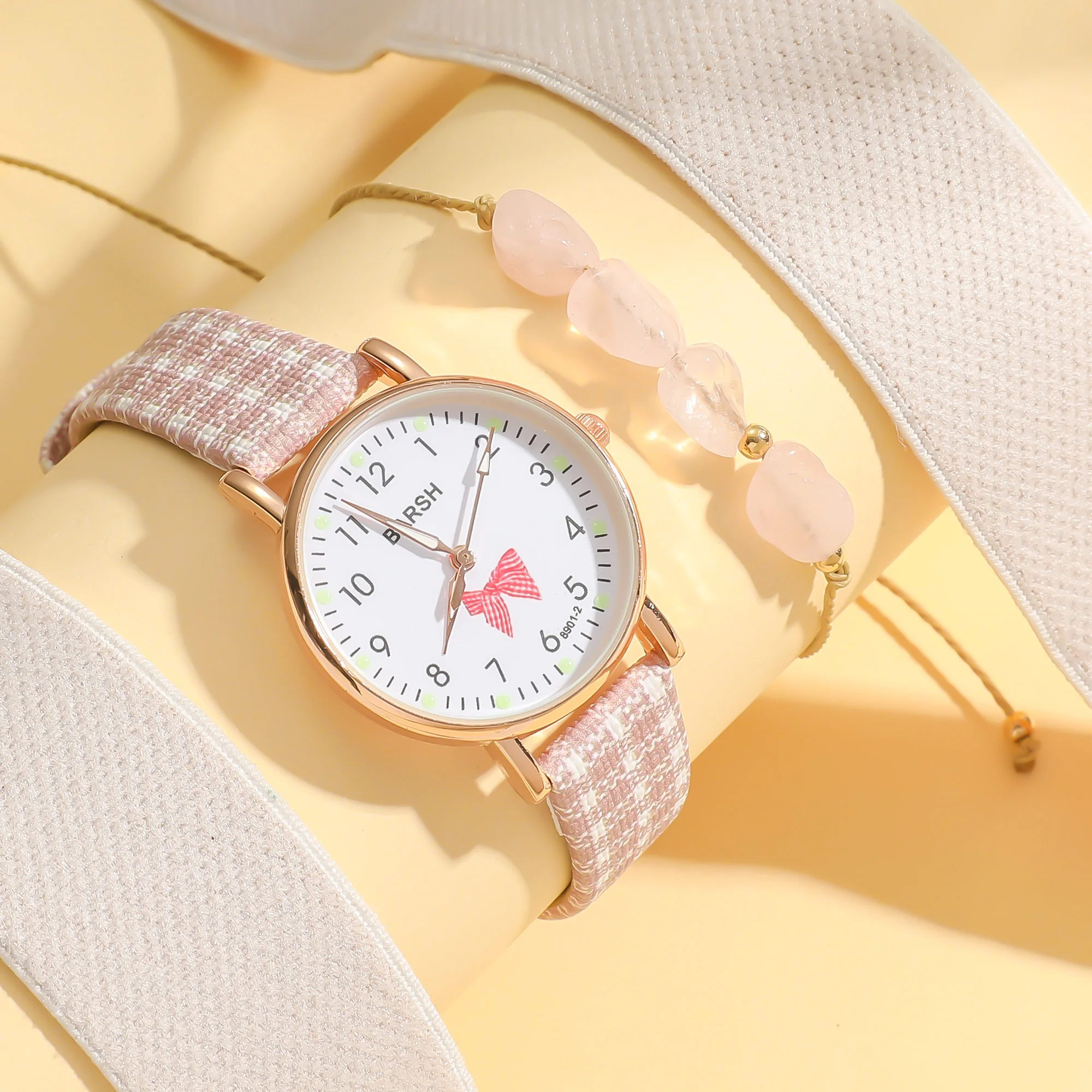 No gift box; cute pink girl's watch and bracelet set; suitable for festivals and birthdays as a gift.