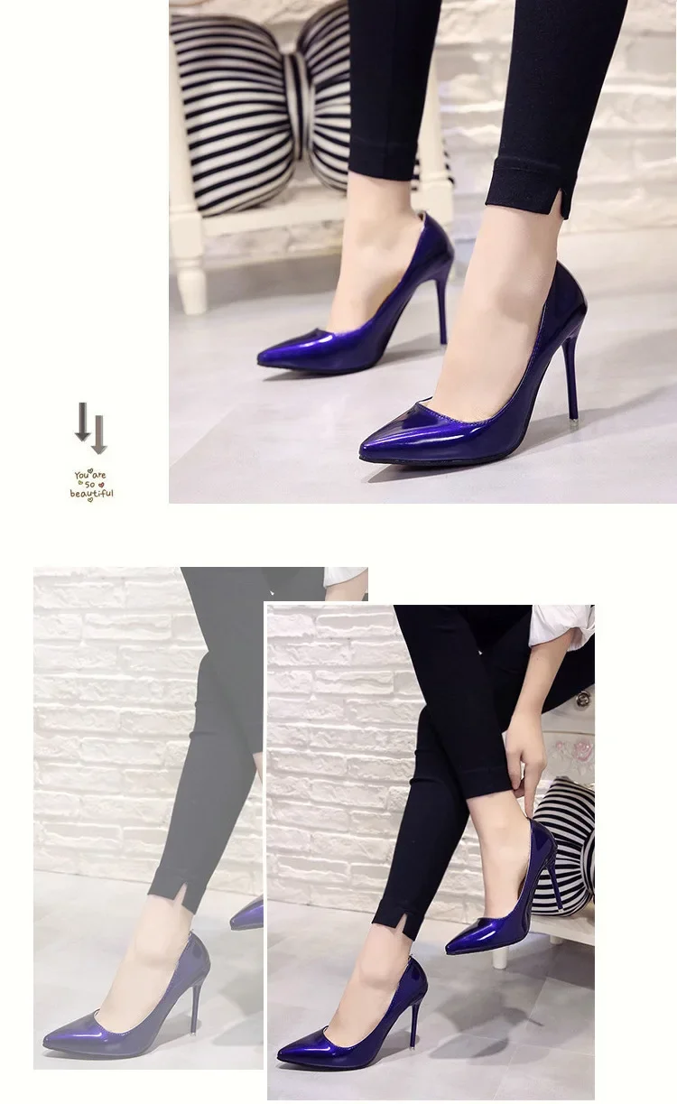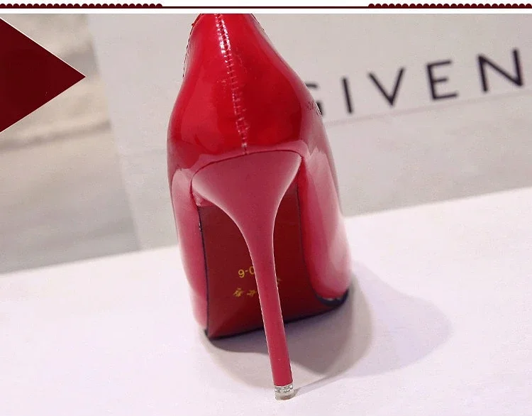 Nude Pumps for Women High Heel Shoes Female Fashion Patent Leather Sexy Pointed Toe Thin Heel Wedding Shoes Plus Size 34-44