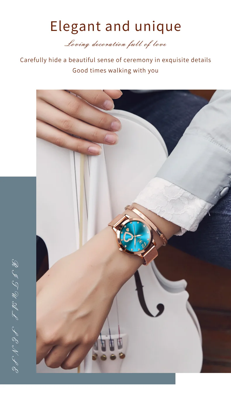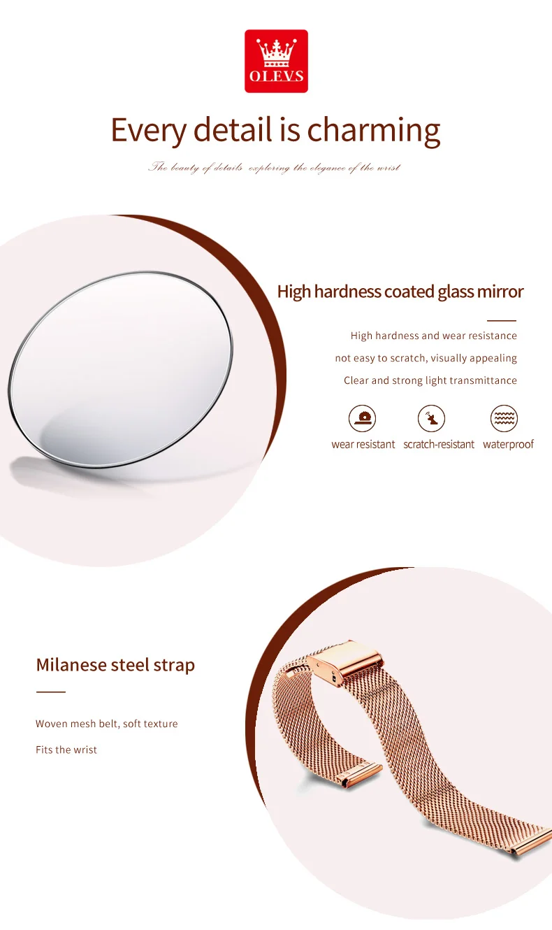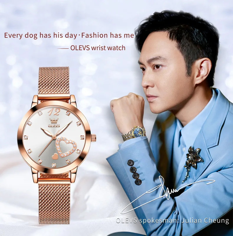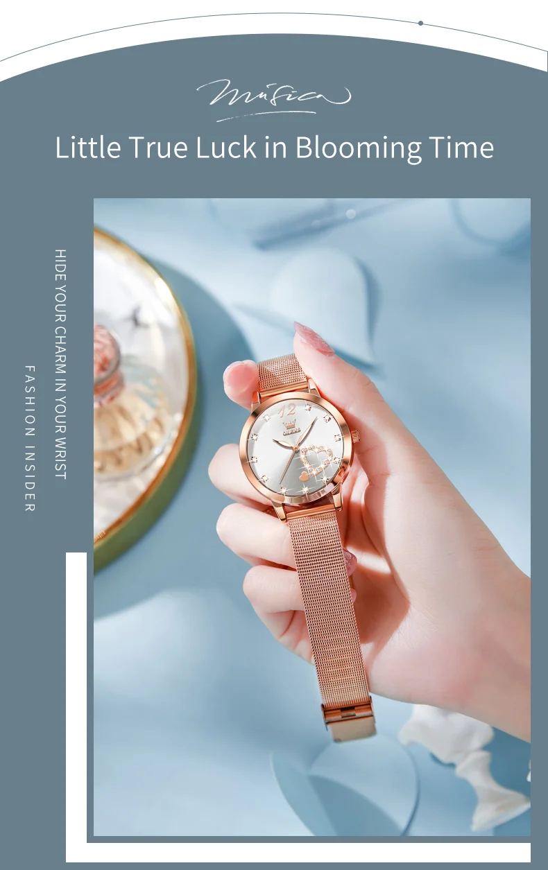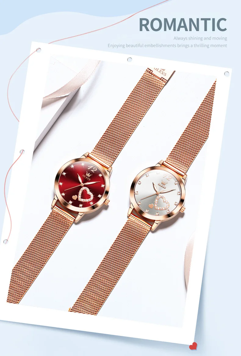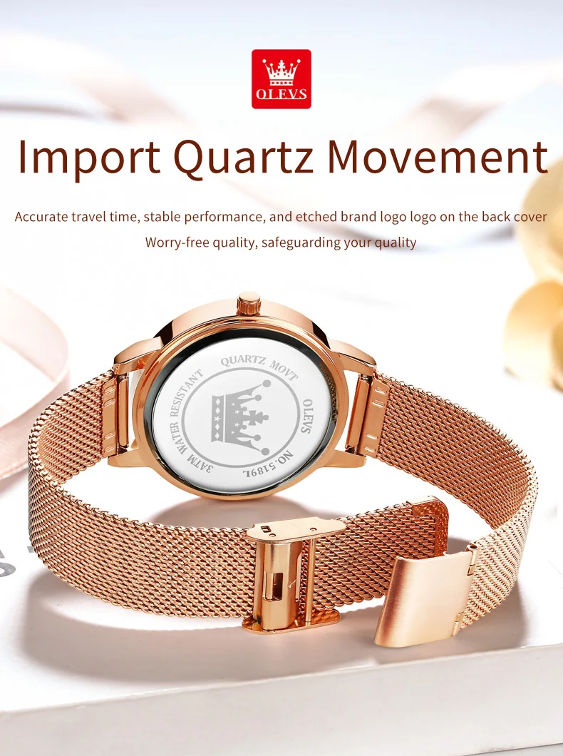 OLEVS 5189 Women's Watch Quartz Wristwatch Casual Fashion Watch for Ladies Waterproof Luminous Mesh Belt Love Dial Zircon Scale
