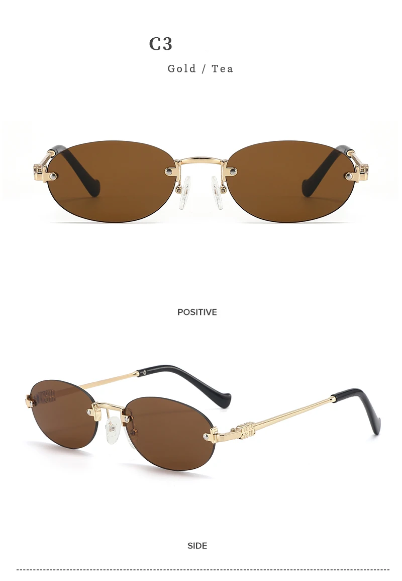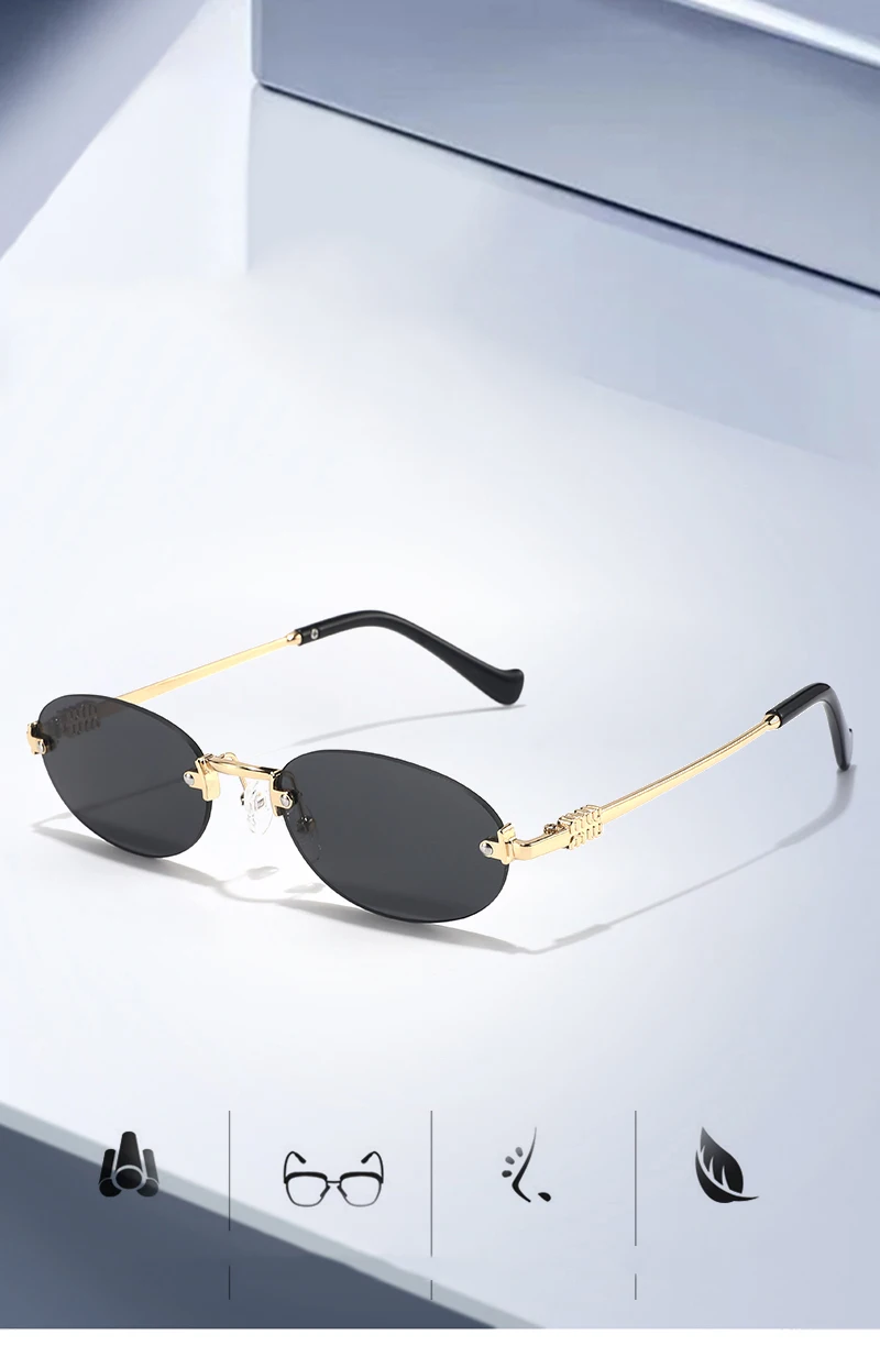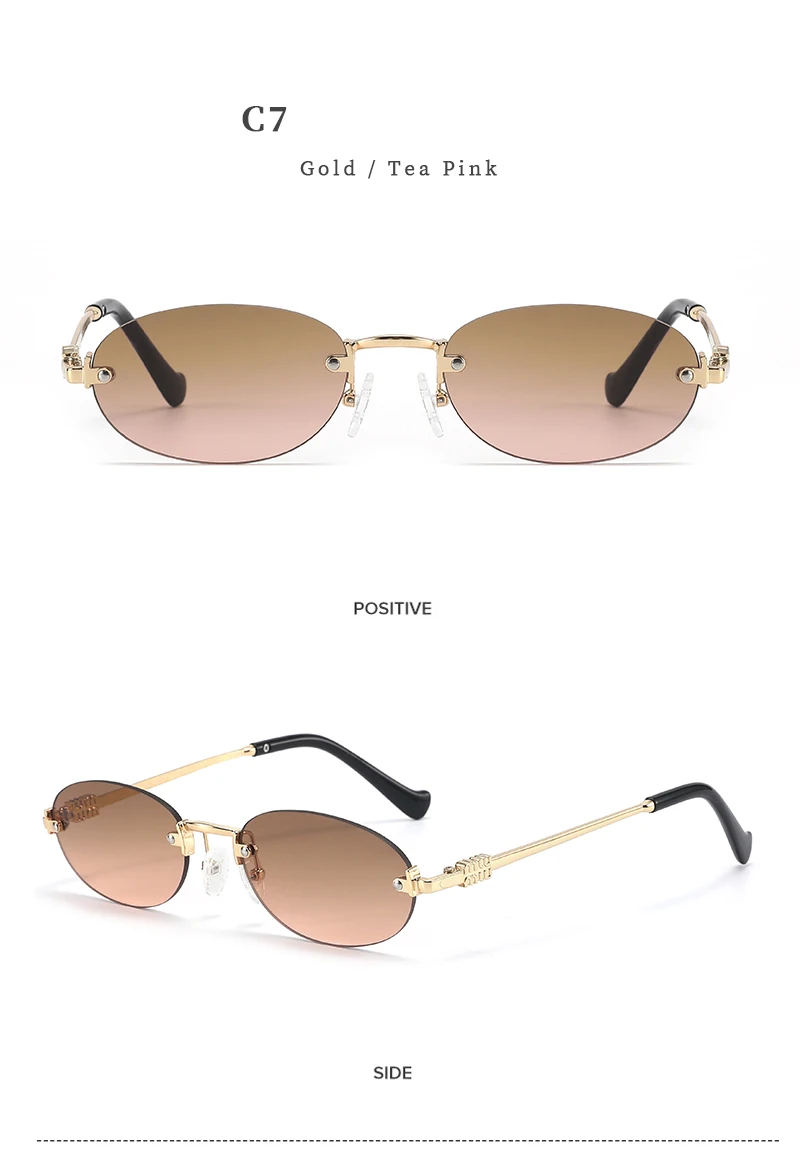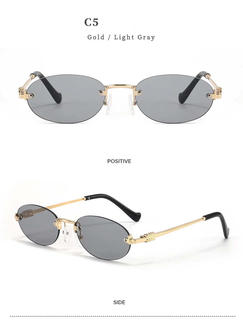 Oval Frameless Sunglasses 2025 New Sunglasses Retro Sunglasses Trendy Concave Style Hot Girl 7819