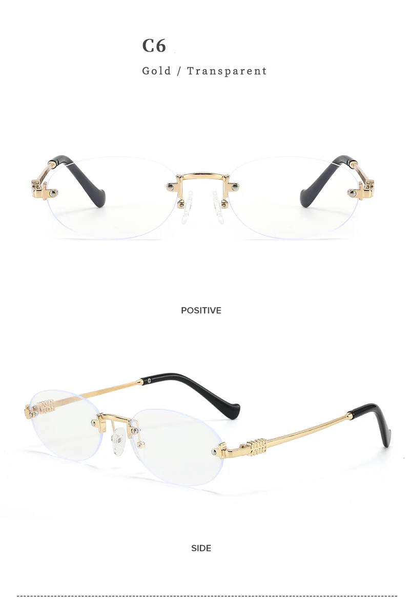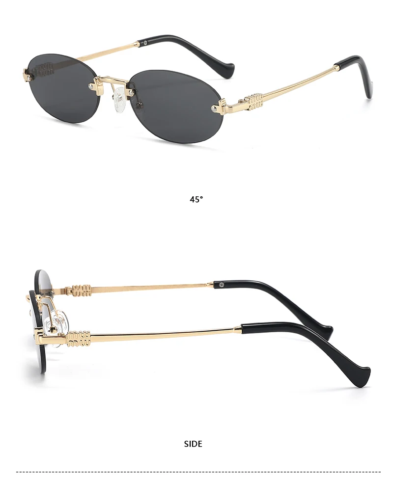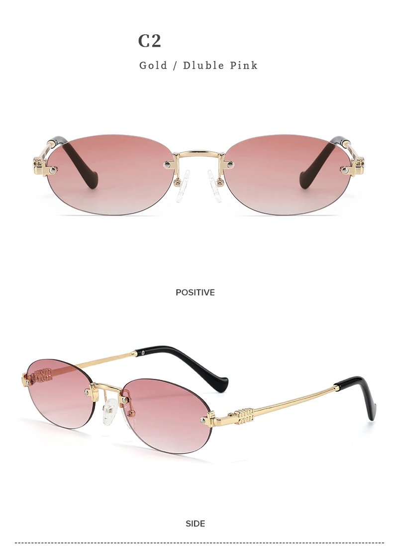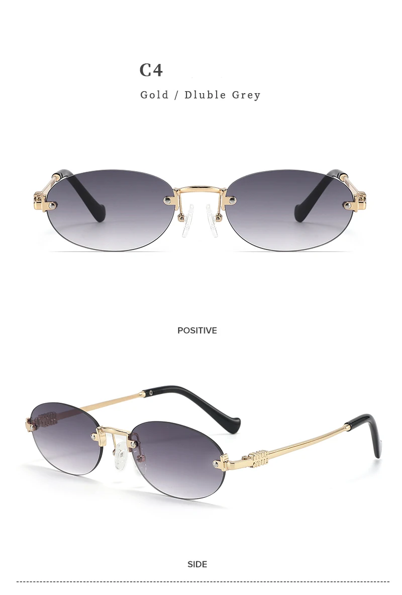 Oval Frameless Sunglasses 2025 New Sunglasses Retro Sunglasses Trendy Concave Style Hot Girl 7819