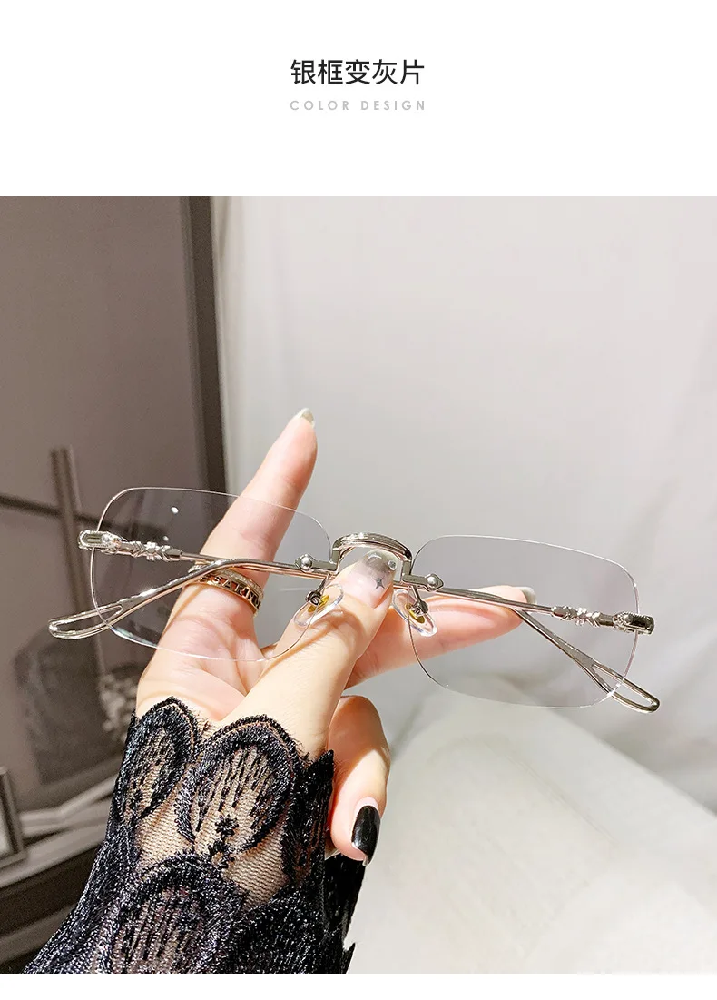 Photo-sensitive Color-changing Anti-blue-light Glasses, Rimless And Elegant Style For Women.2190
