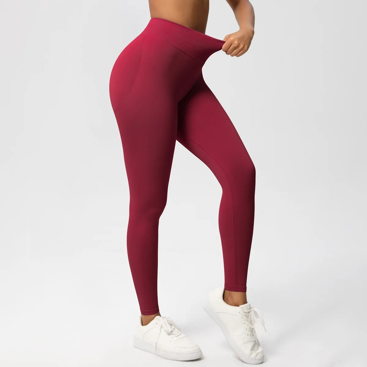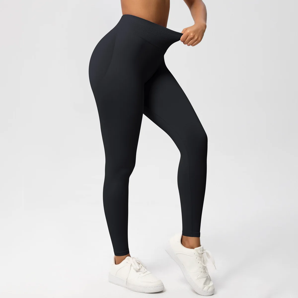 Seamless Yoga Pants Women Ribbed Low Waist Gym Leggings Hip Lifting Sports Tights Fitness Scrunch Bum Workout Yoga Leggings