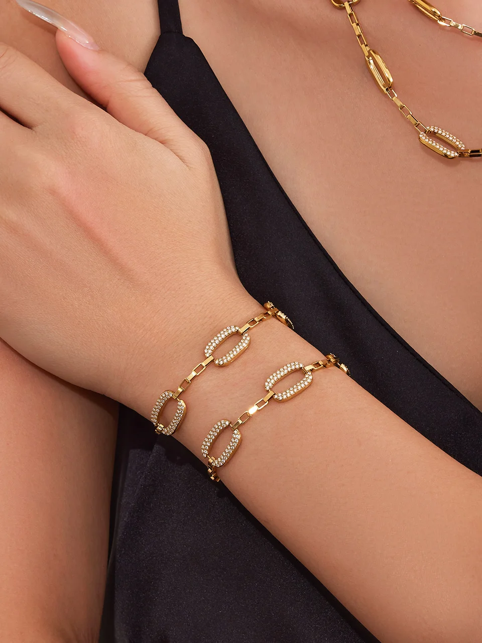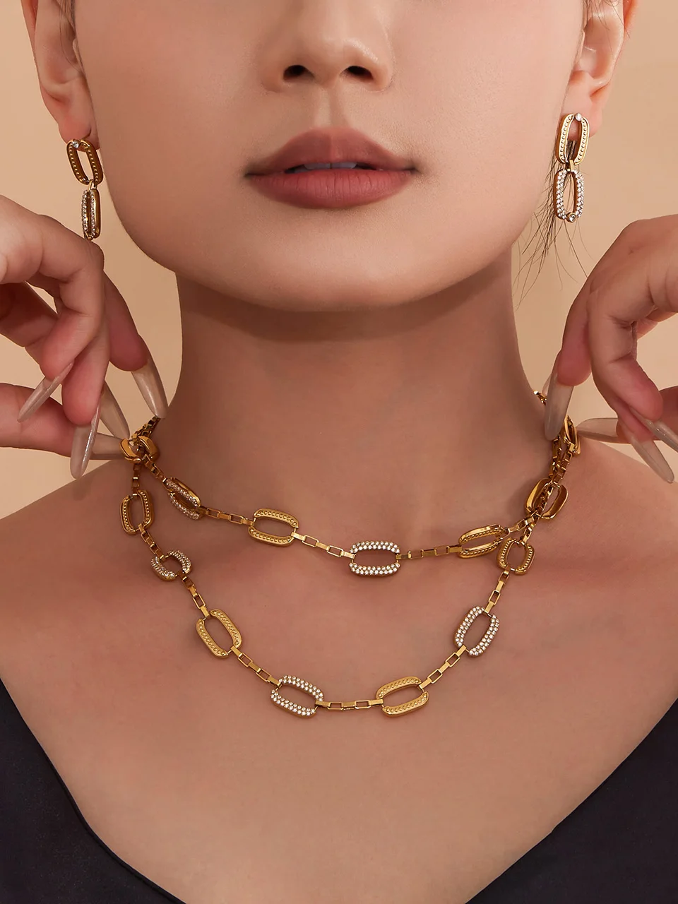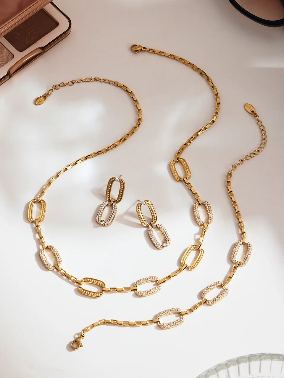 Stainless Steel Chain Necklace Bracelet Matching Earring For Women 18k Gold Plated With Zircon Necklaces Bracelets Earrings Set