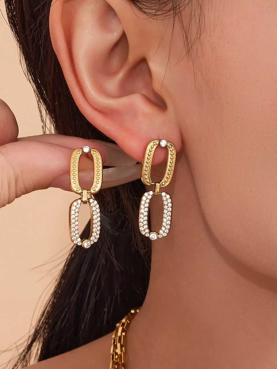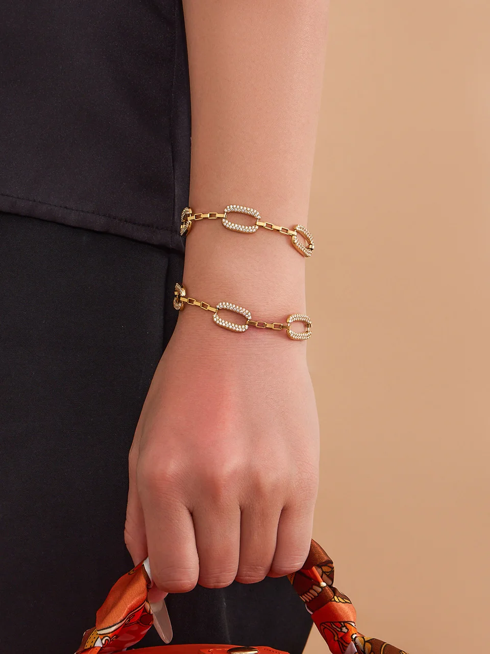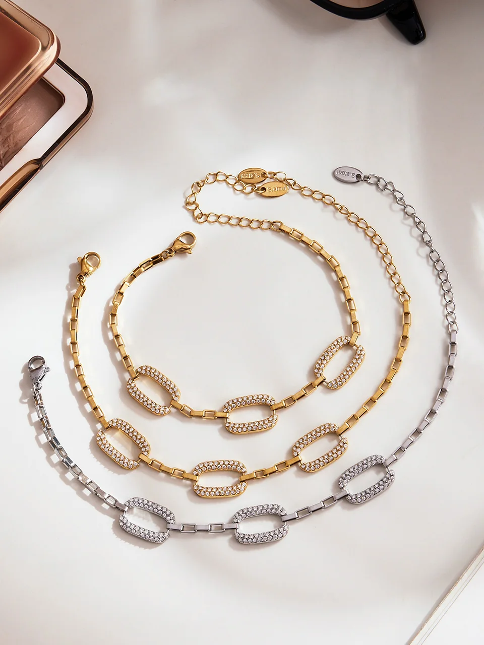 Stainless Steel Chain Necklace Bracelet Matching Earring For Women 18k Gold Plated With Zircon Necklaces Bracelets Earrings Set