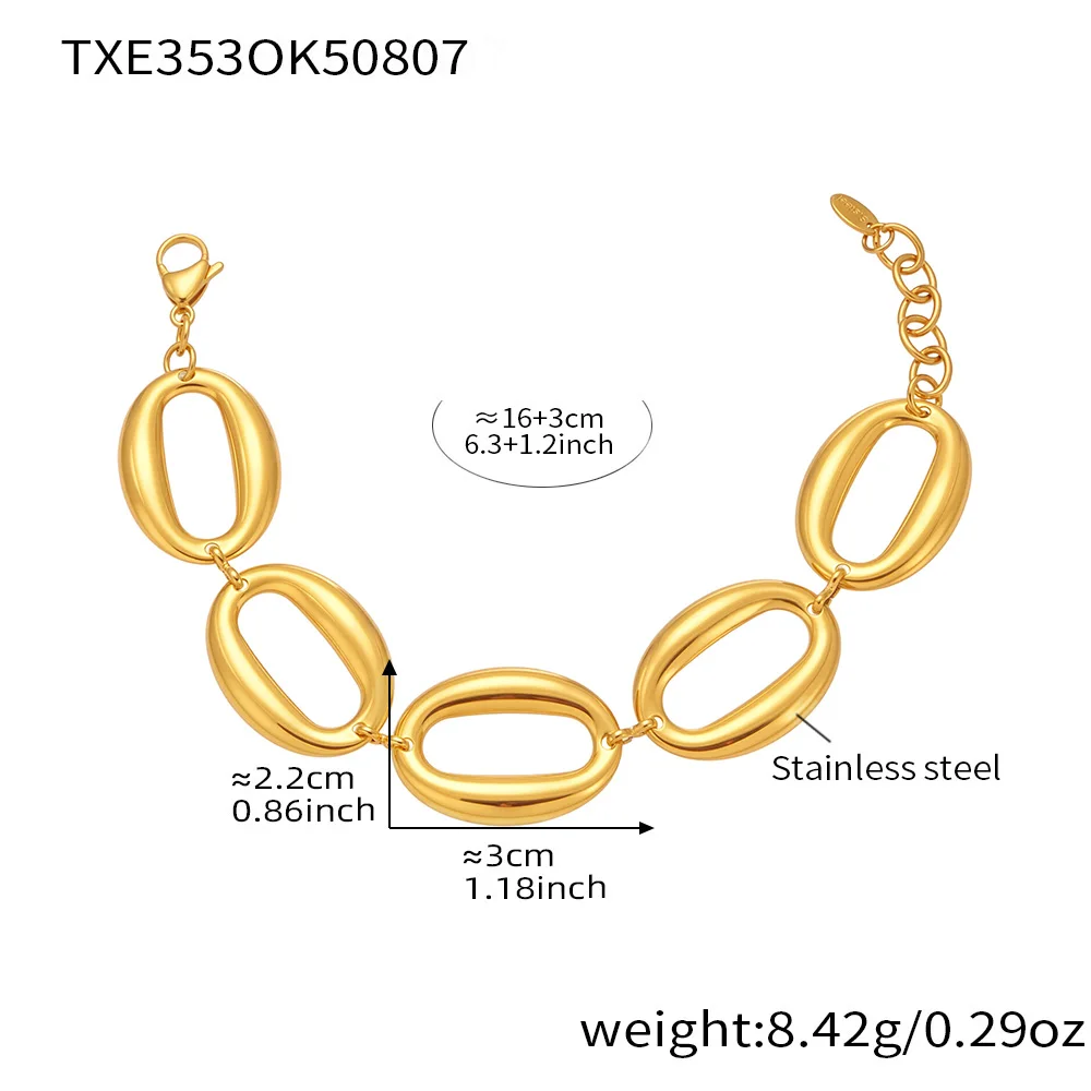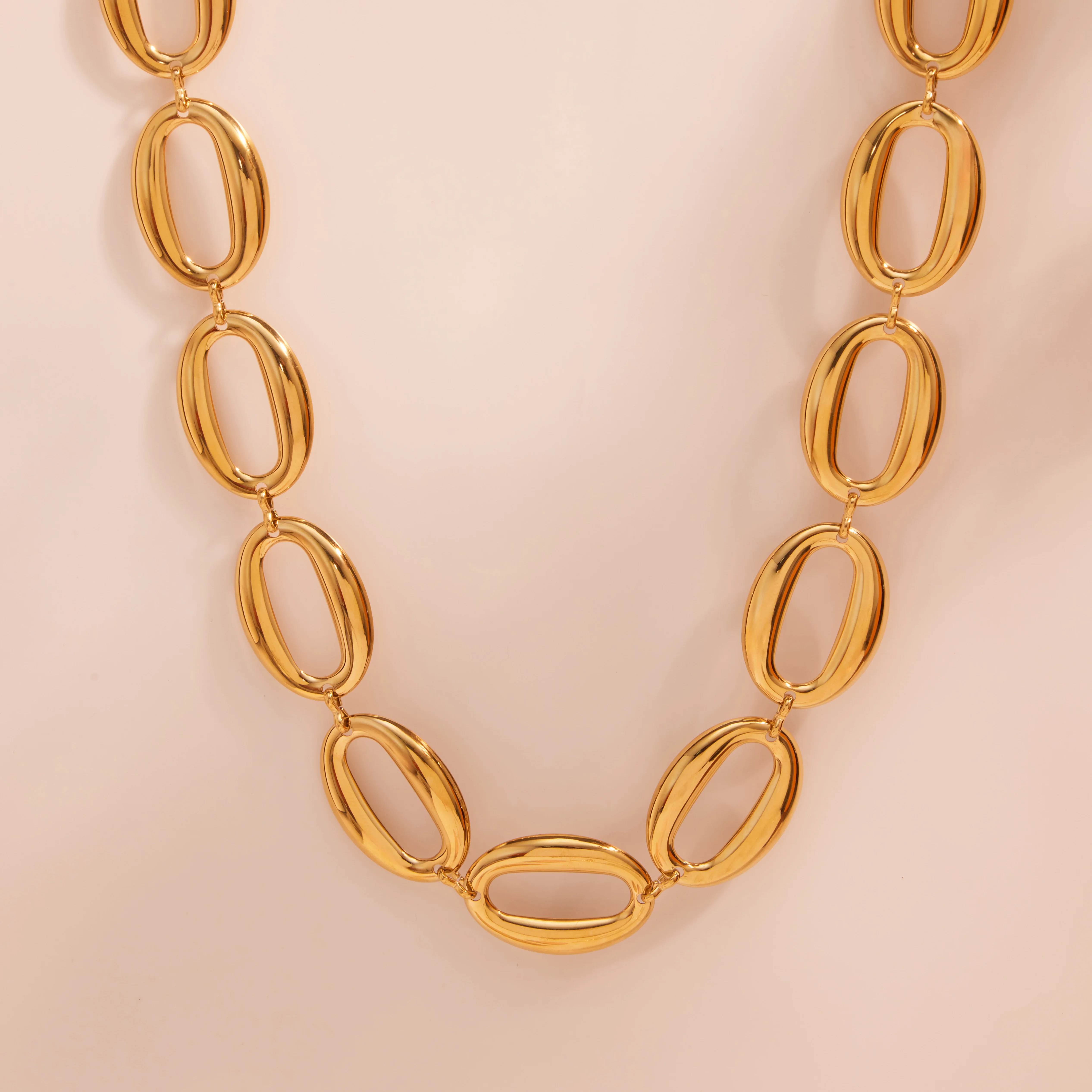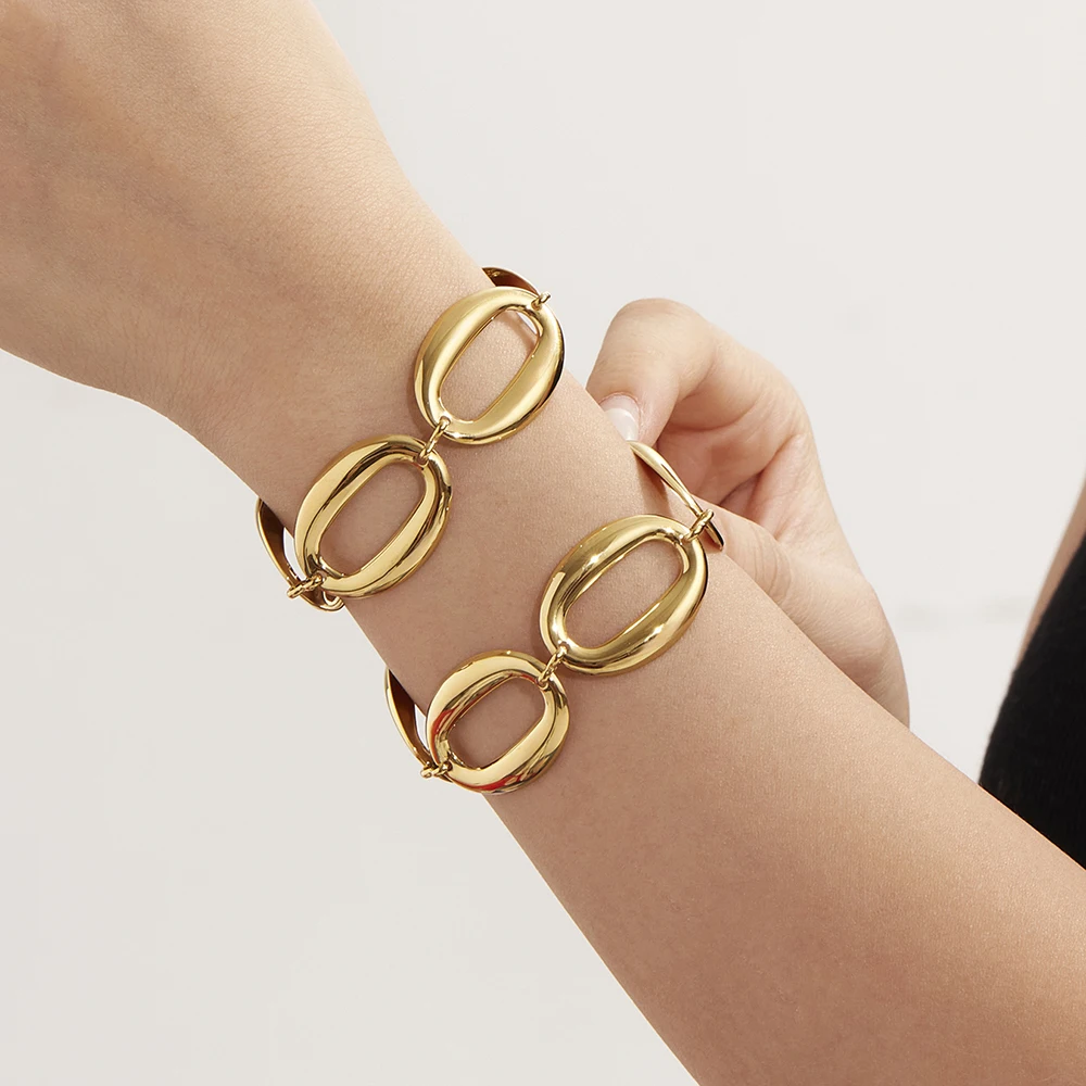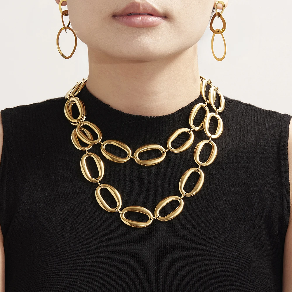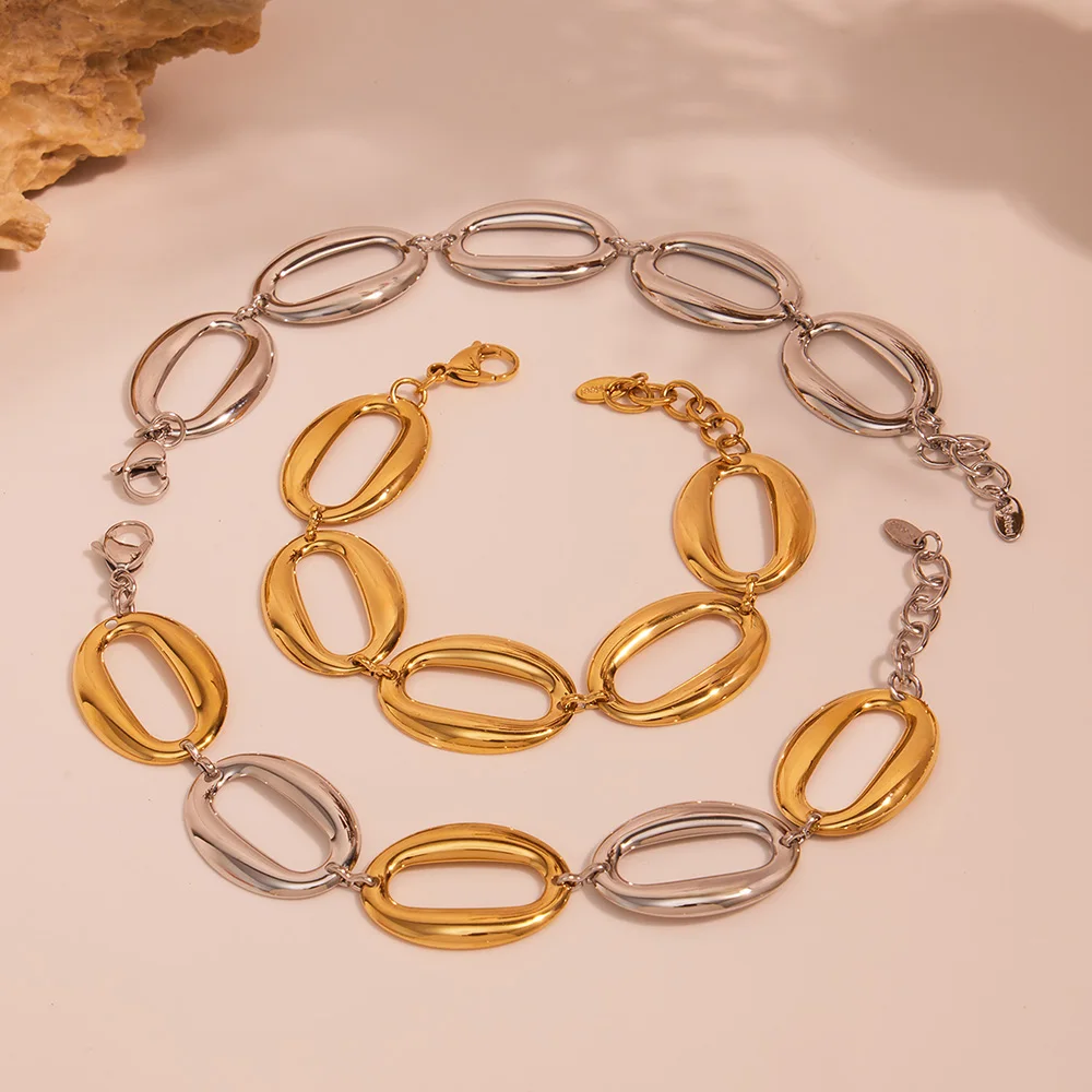 Stainless Steel Gold-Plated Oval Chain Necklace Bracelet Women's Punk Gold Color Silver Luxury Choker Waterproof Jewelry Set