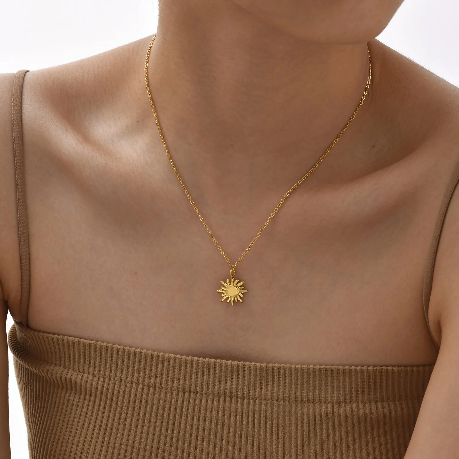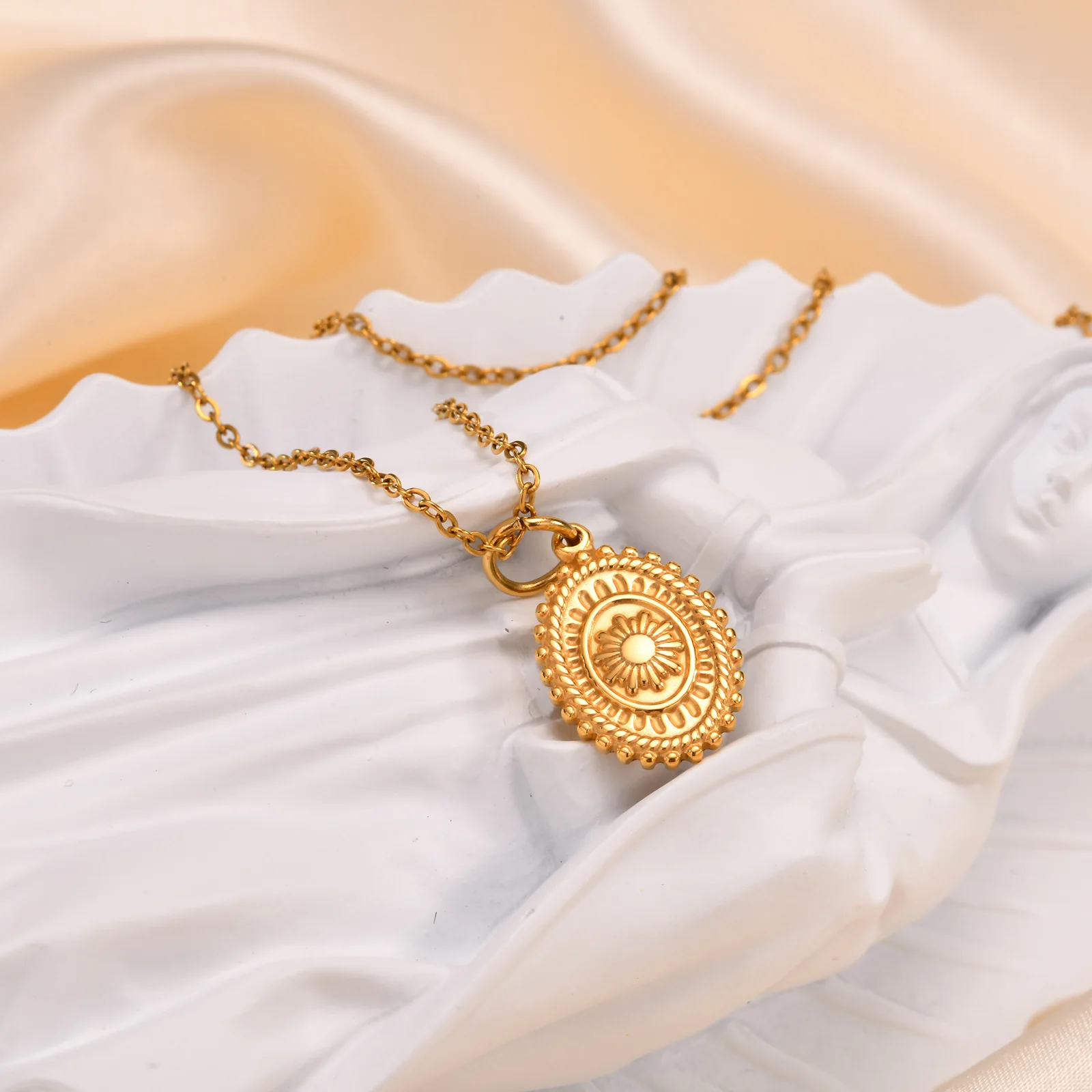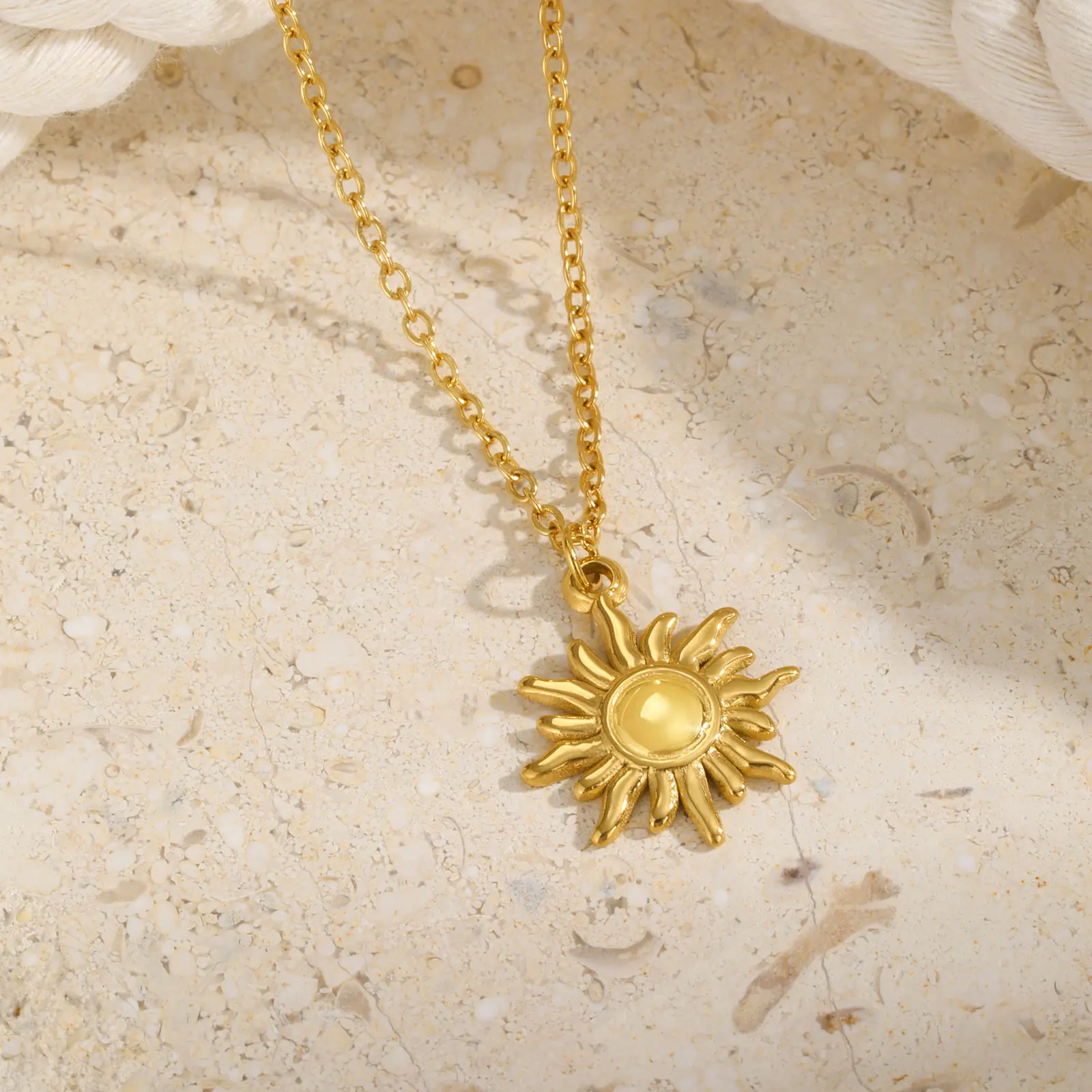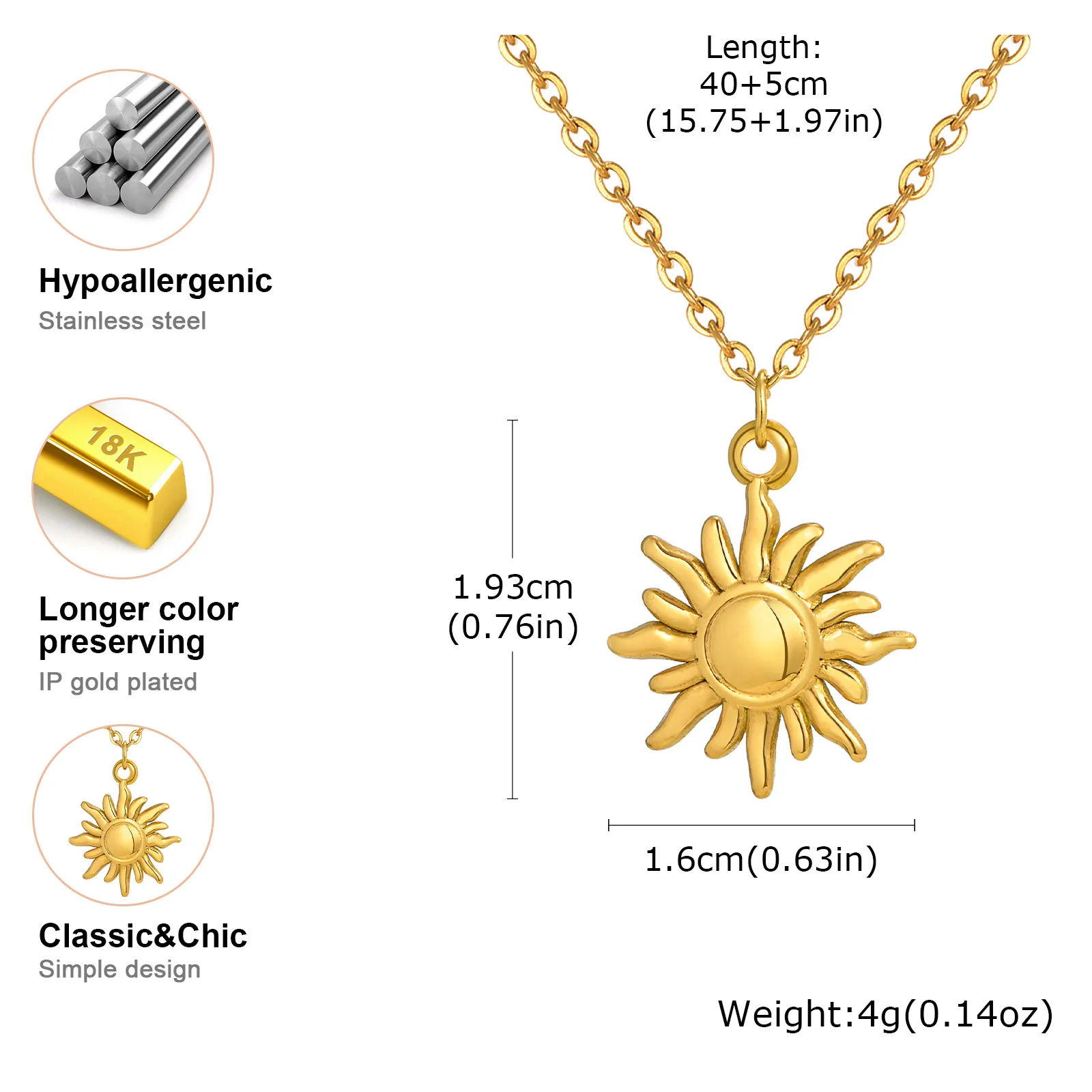 Stainless Steel Spiral Sun Flower Pendant Necklace for Women 18K Gold Plated Stackable Boho Necklace Waterproof Fashion Jewelry