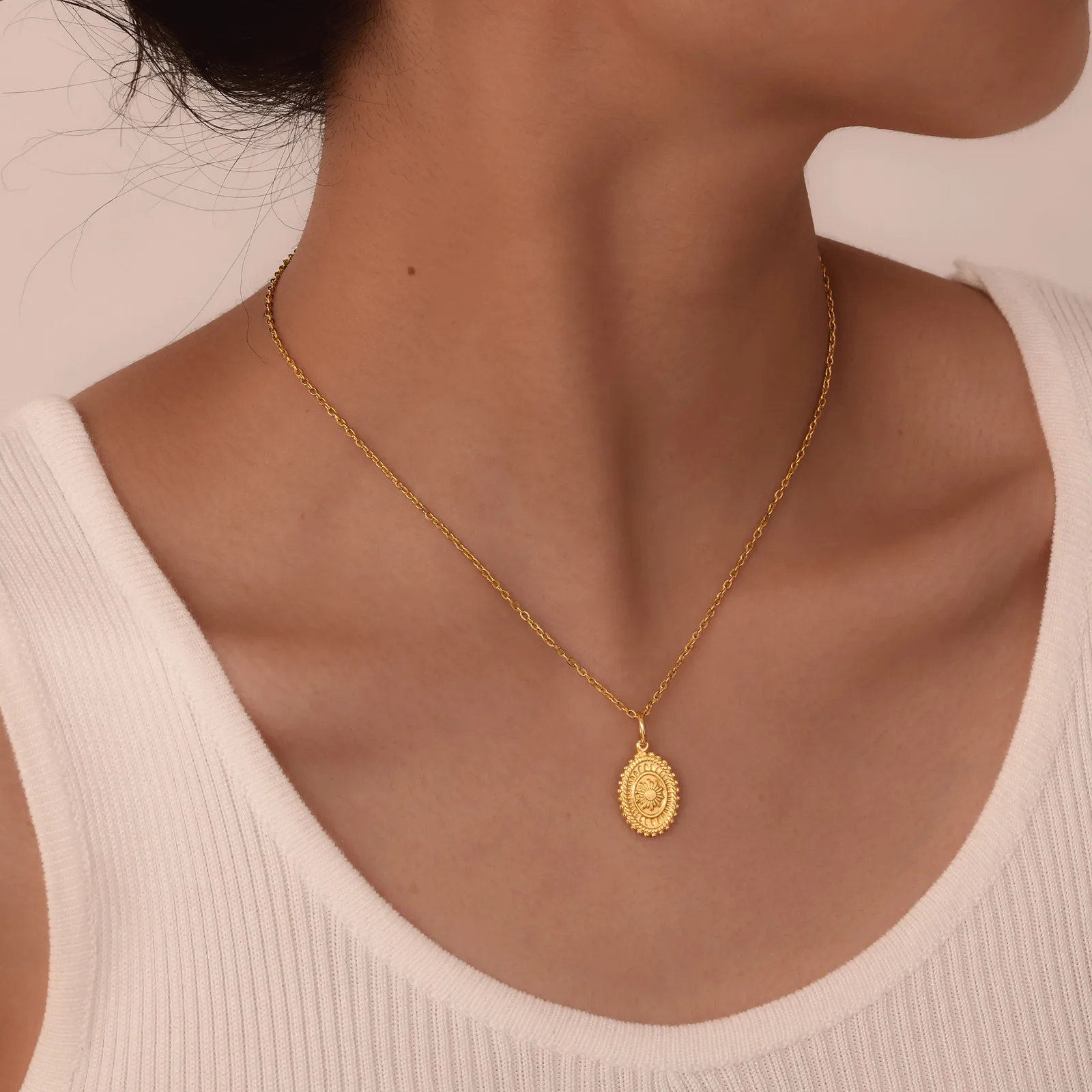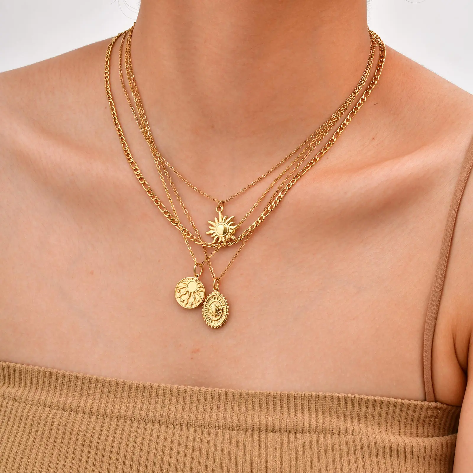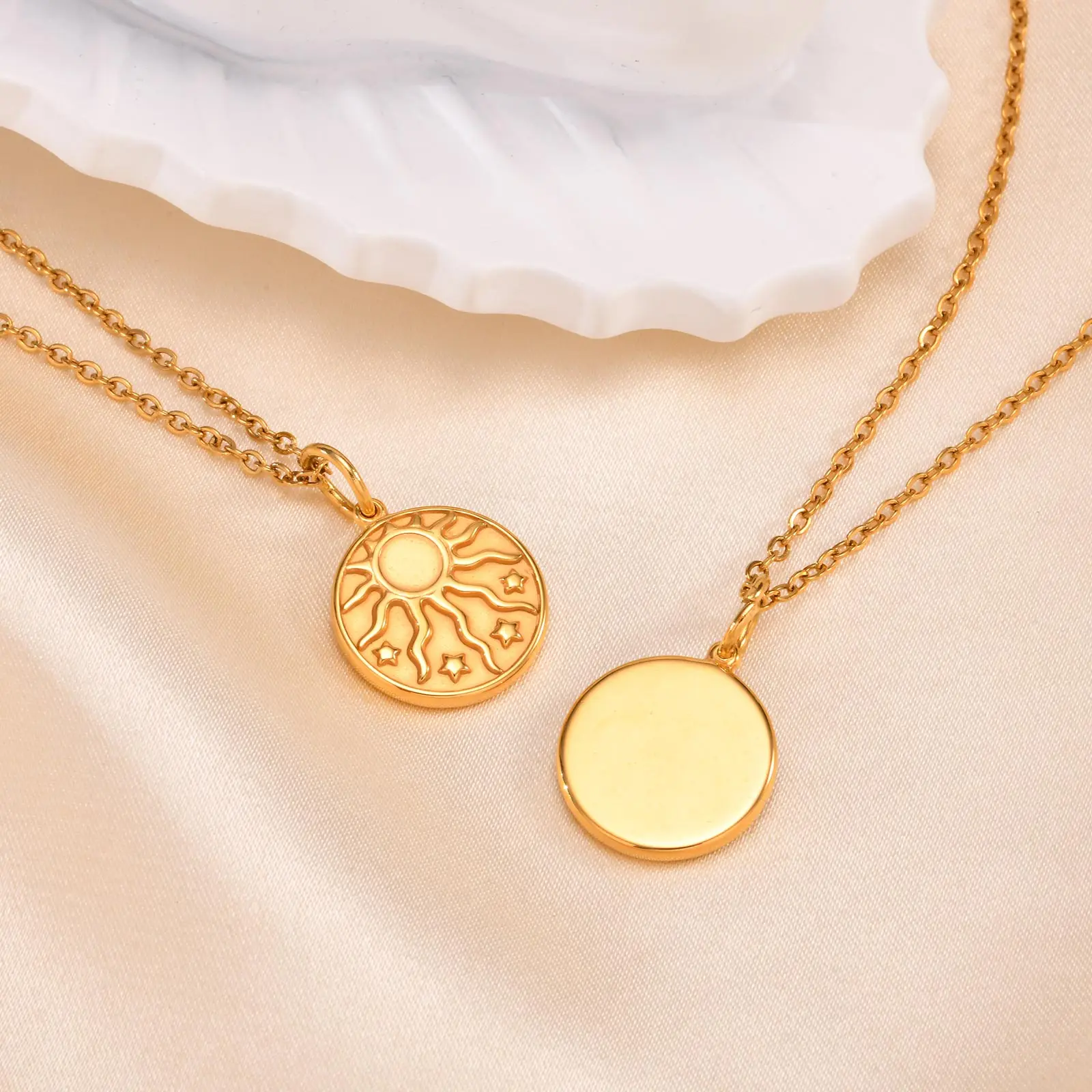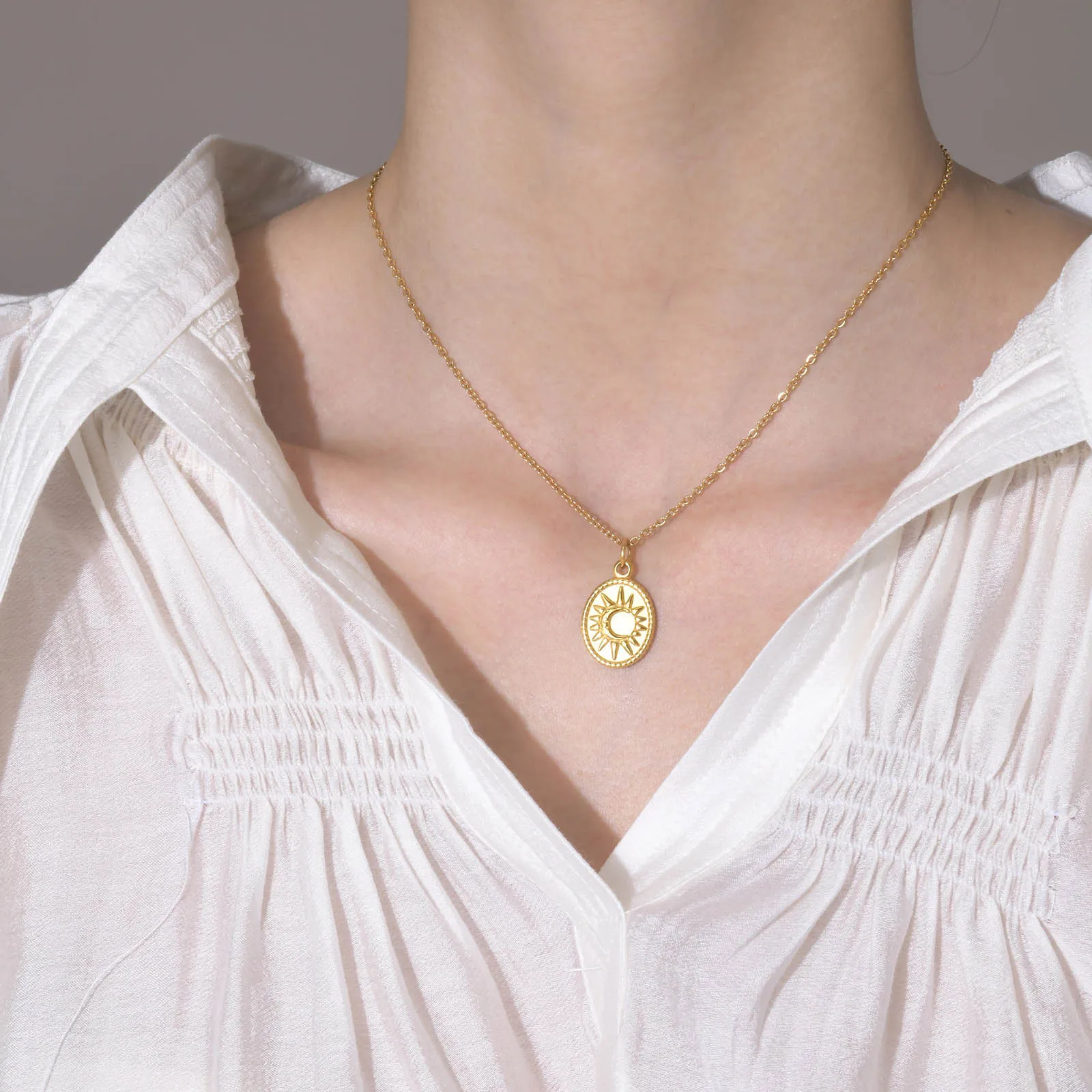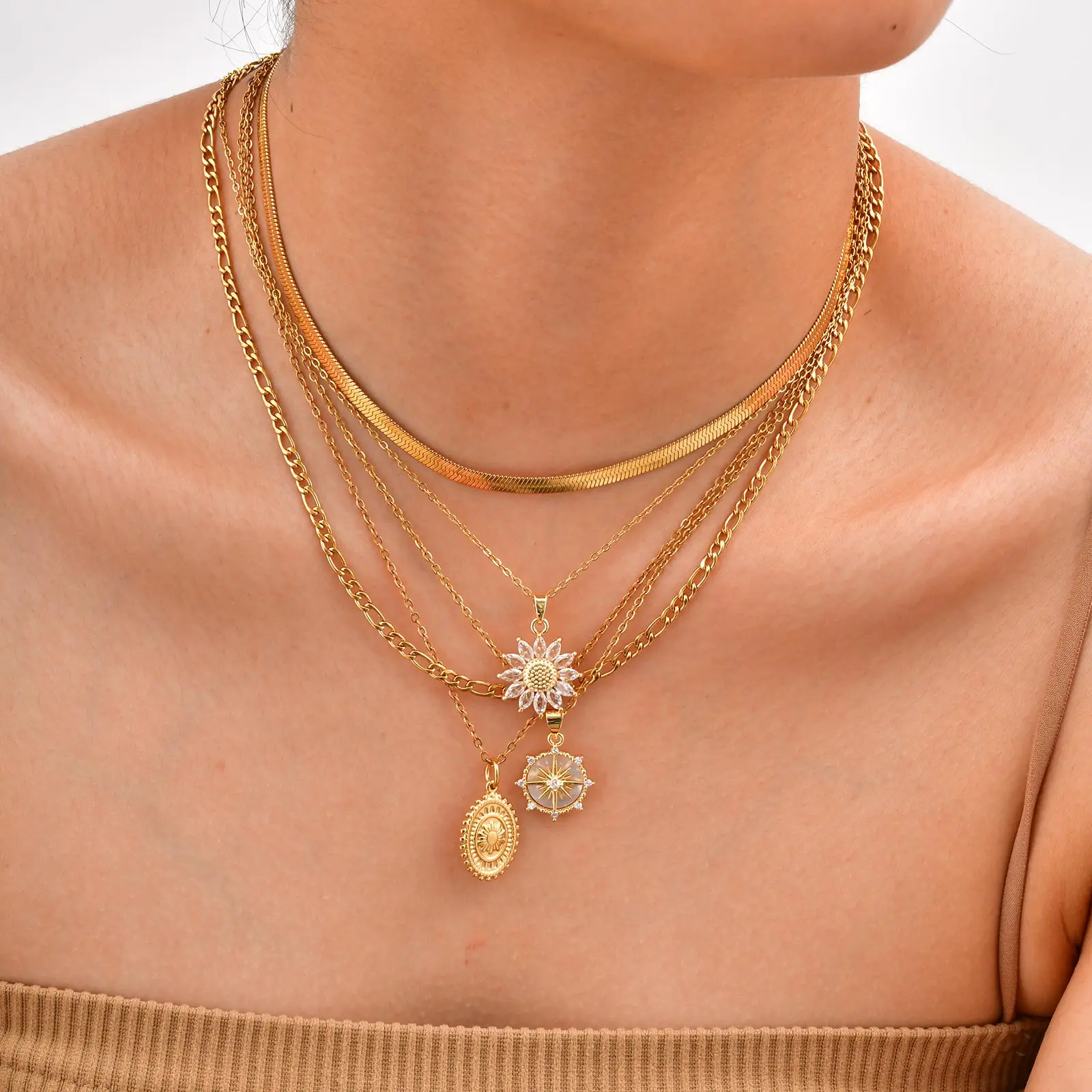 Stainless Steel Spiral Sun Flower Pendant Necklace for Women 18K Gold Plated Stackable Boho Necklace Waterproof Fashion Jewelry