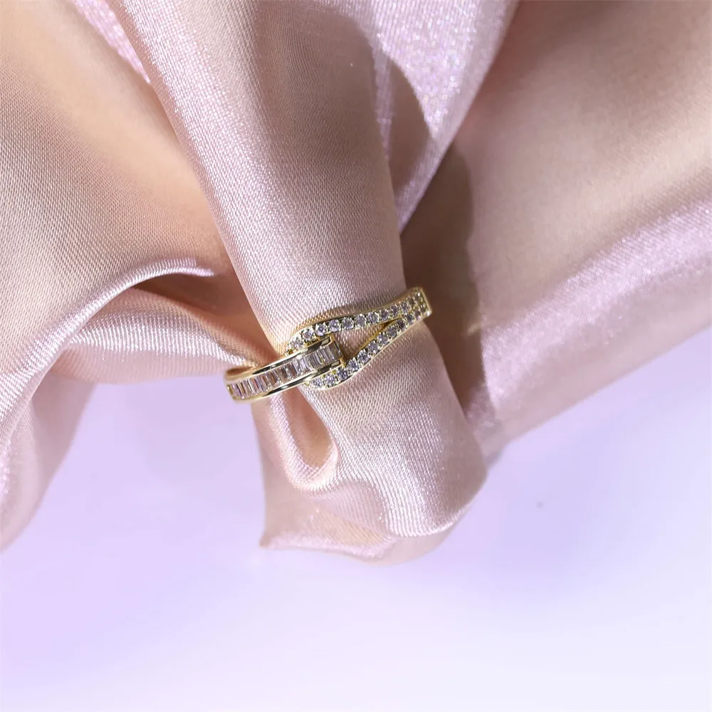 WDM Zircon Open Cubic Geometric Creative Design For Women Adjustable Finger Couple Rings Femme Wedding Jewley Party Gift
