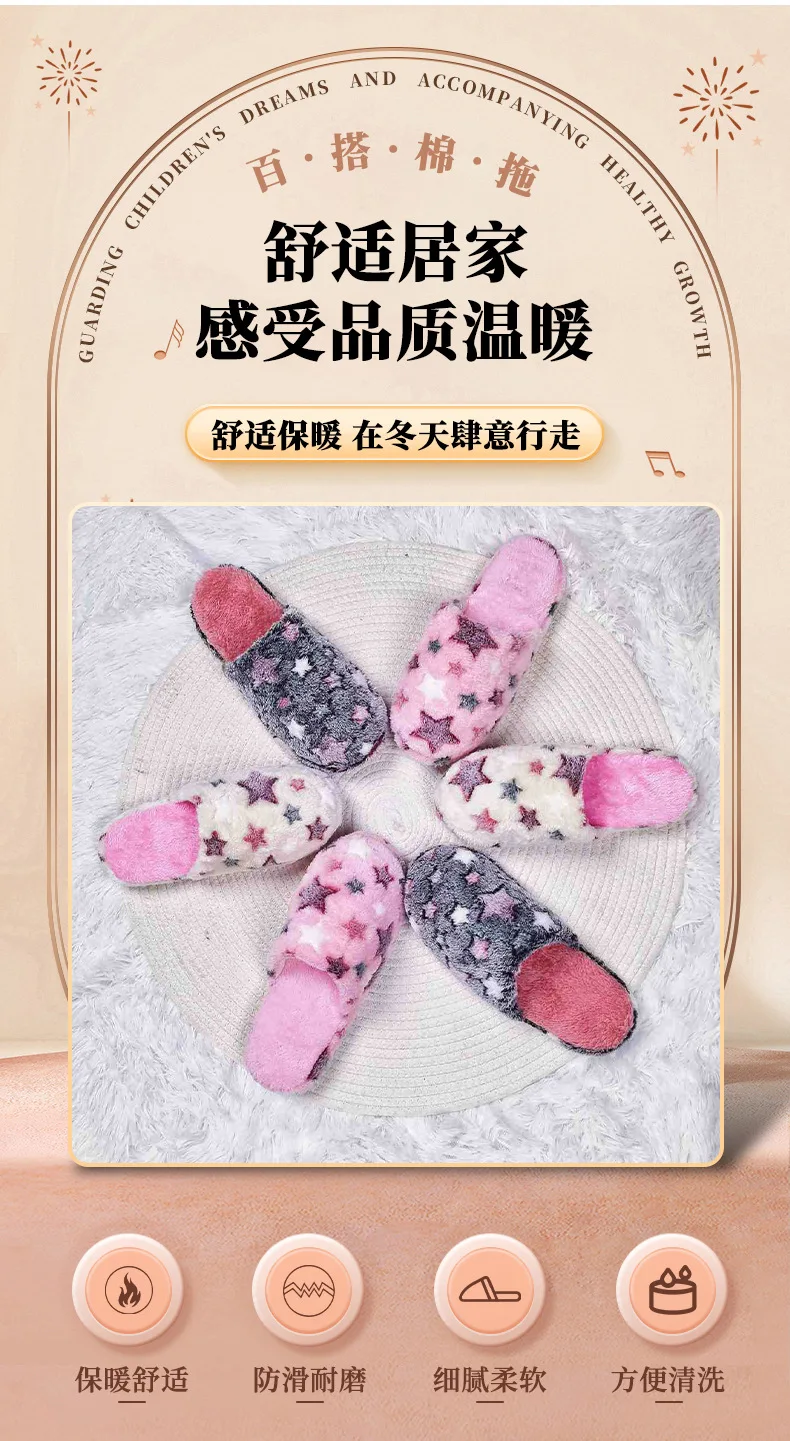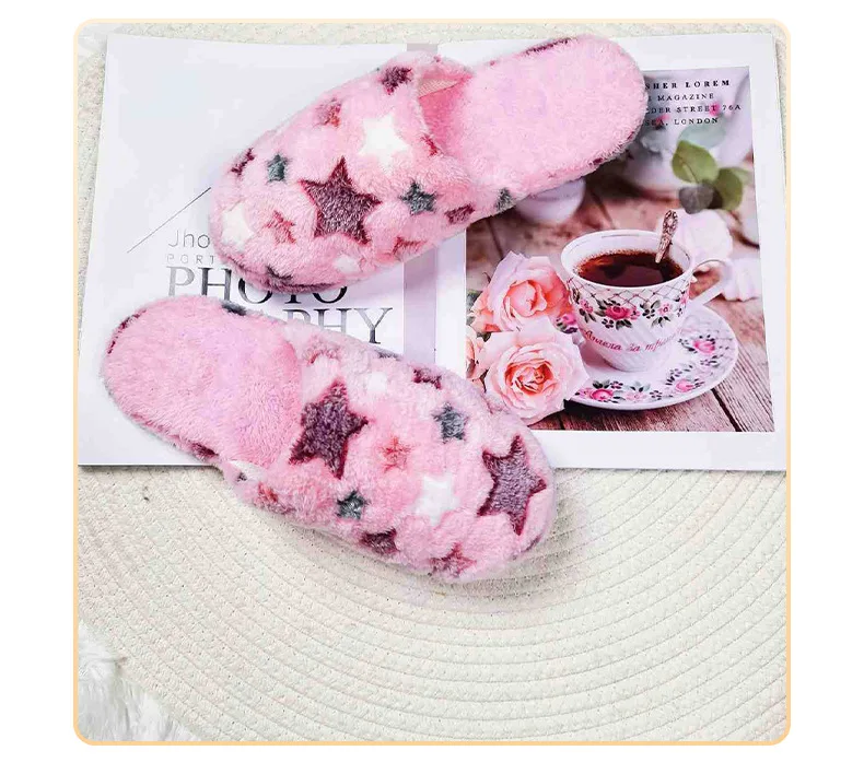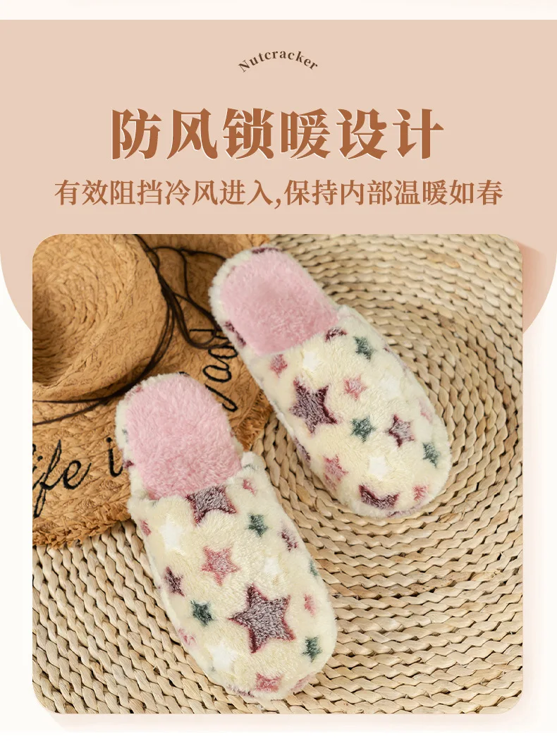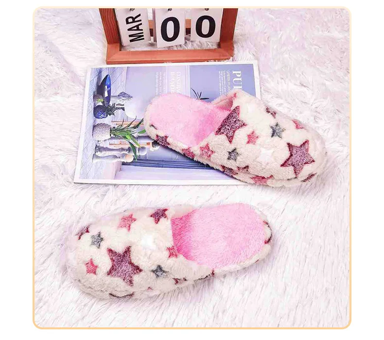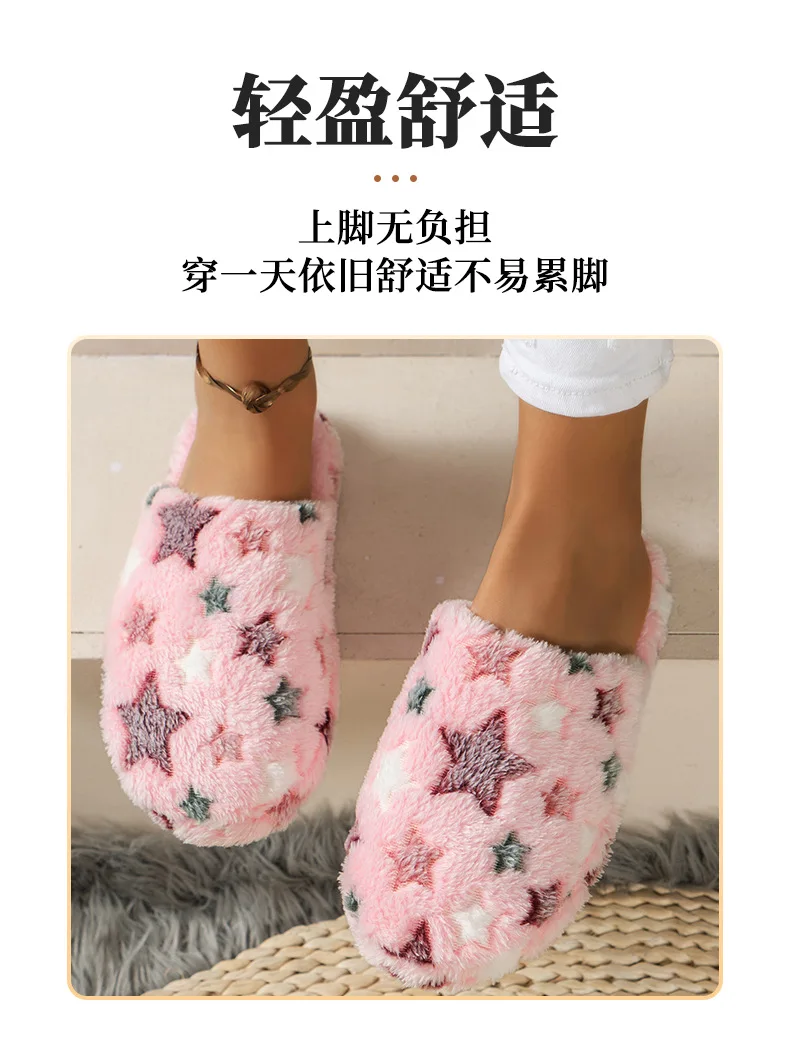 Winter Warm Plush Slippers Women Indoor Five Pointed Stars Soft Light Home Slides Lovely Couples Cartoon Cute Floor Shoes