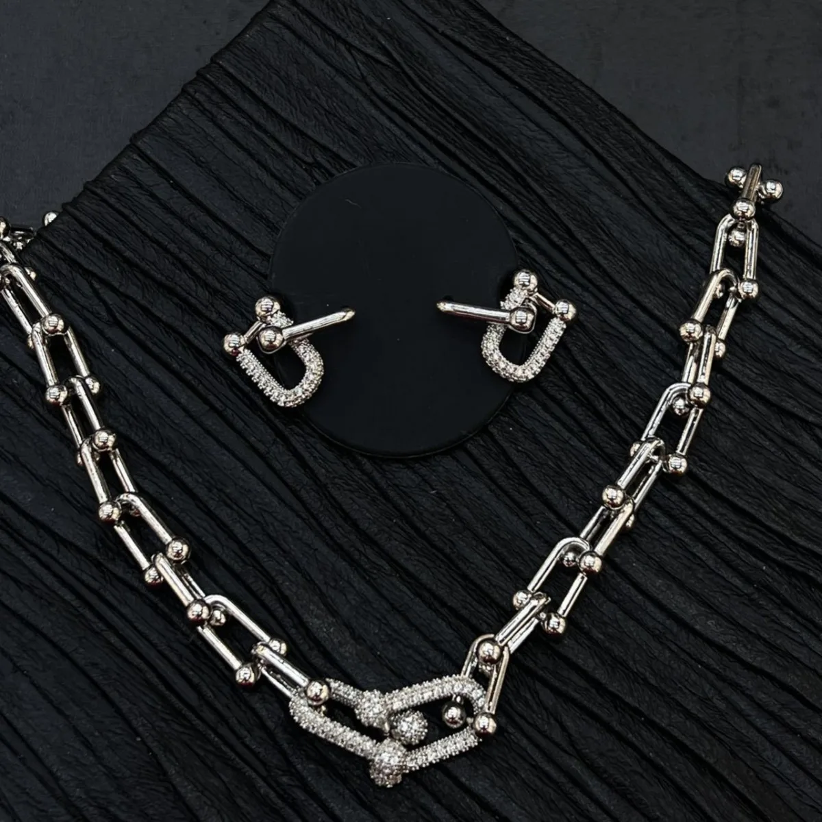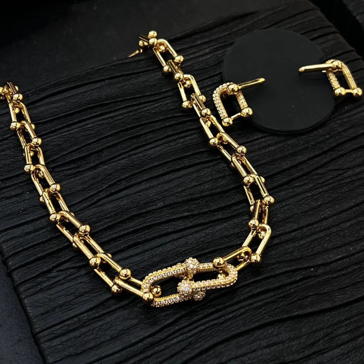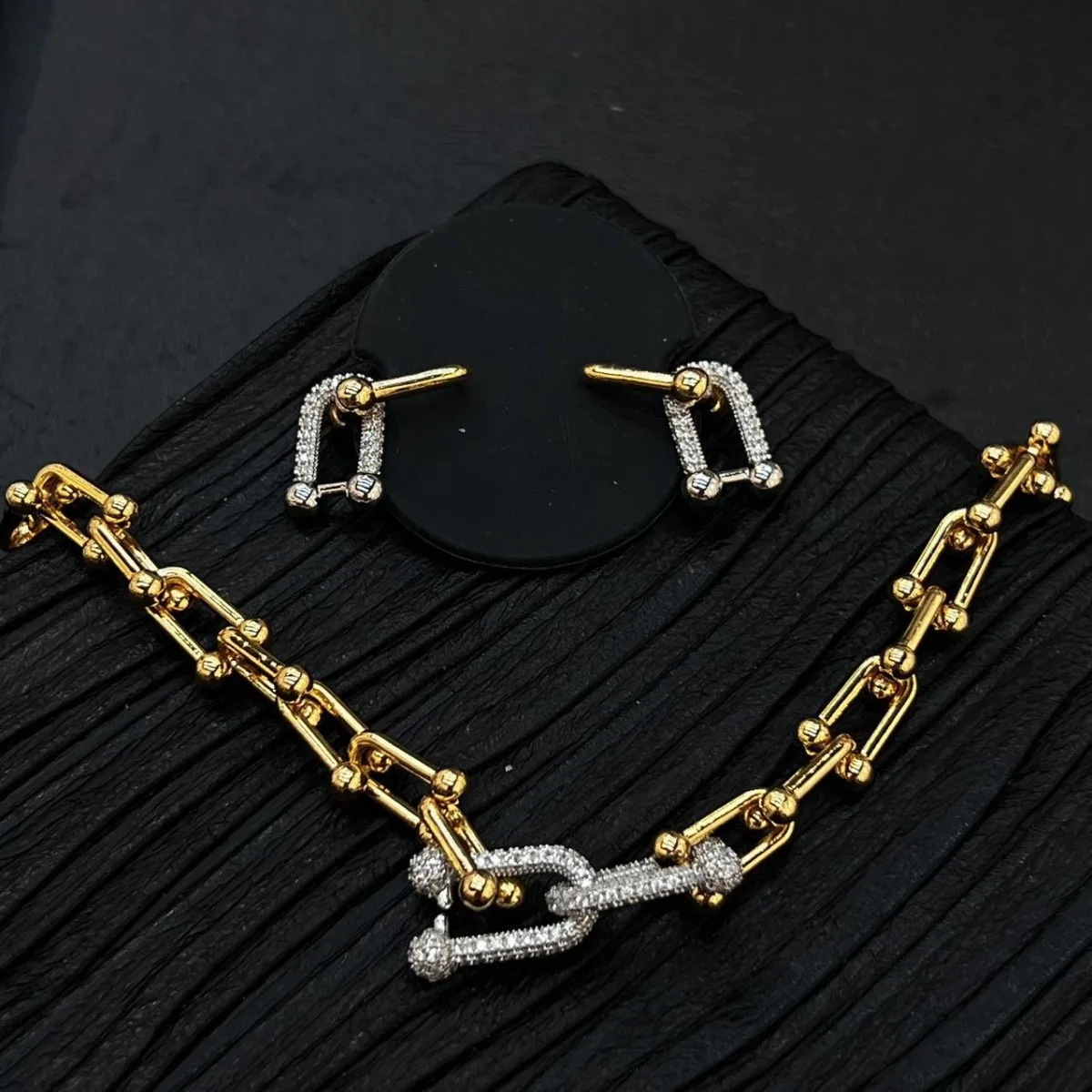 Women's Chain Earrings And Necklace Set, High-End Luxury Fashion Ins Street Gothic Series, Party Wedding Jewelry