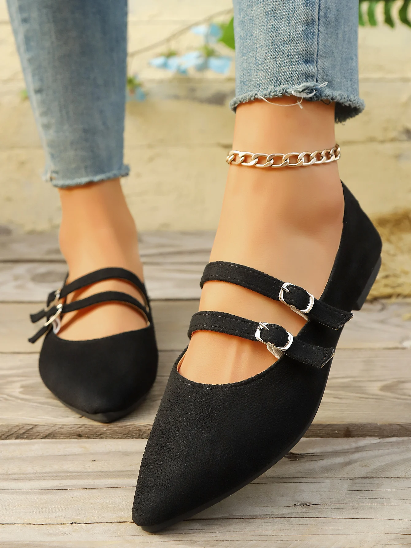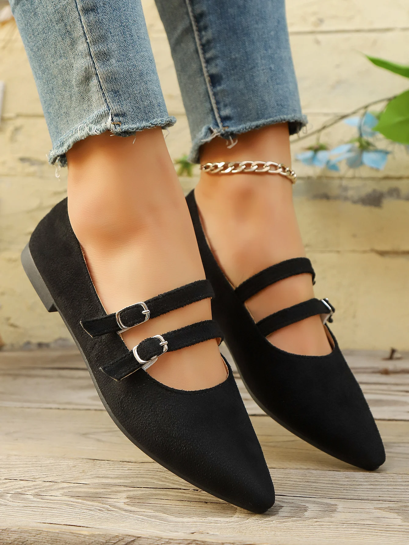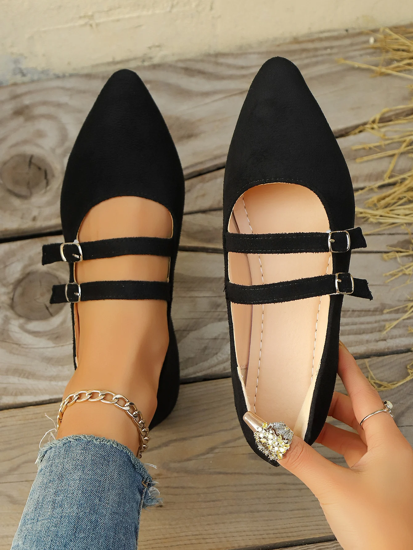 Women's Niche Pointed-Toe Leopard-Print Shoes: New French-Style Slip-On Loafers with Ankle Strap, Ideal for Daily Commute